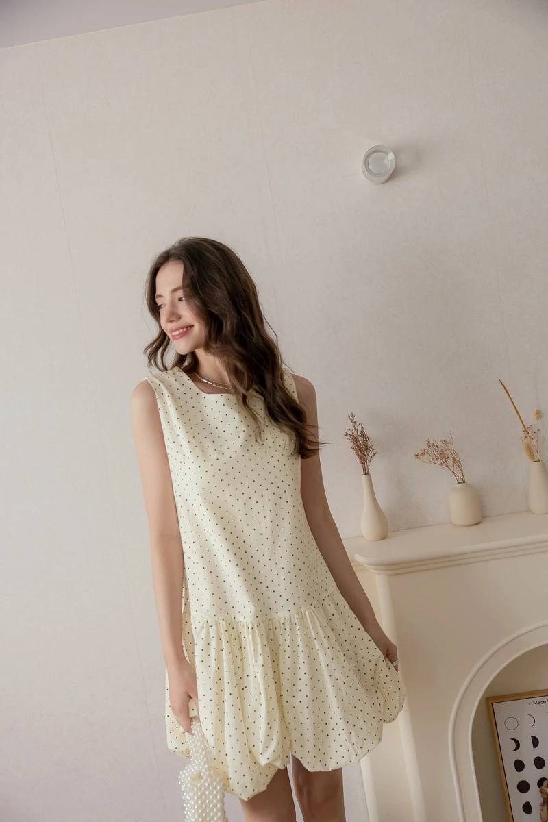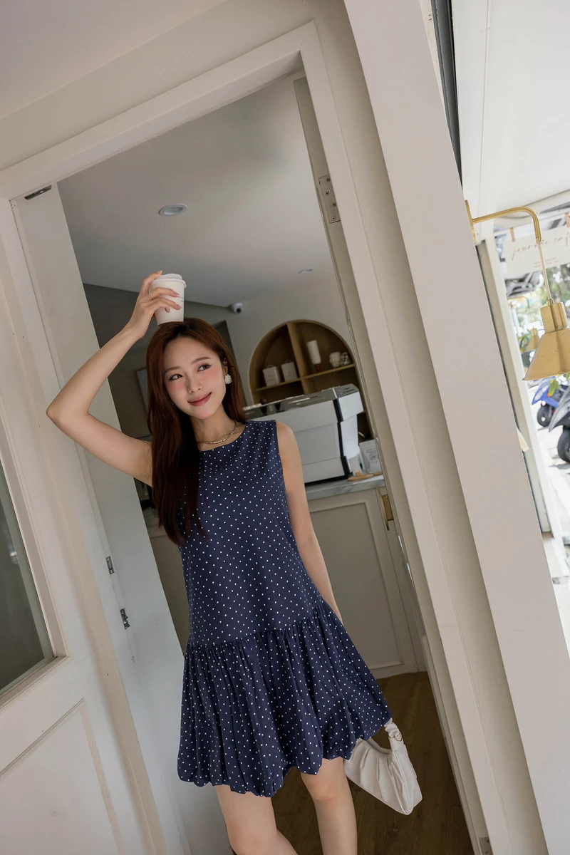 法式波點花苞感洋裝