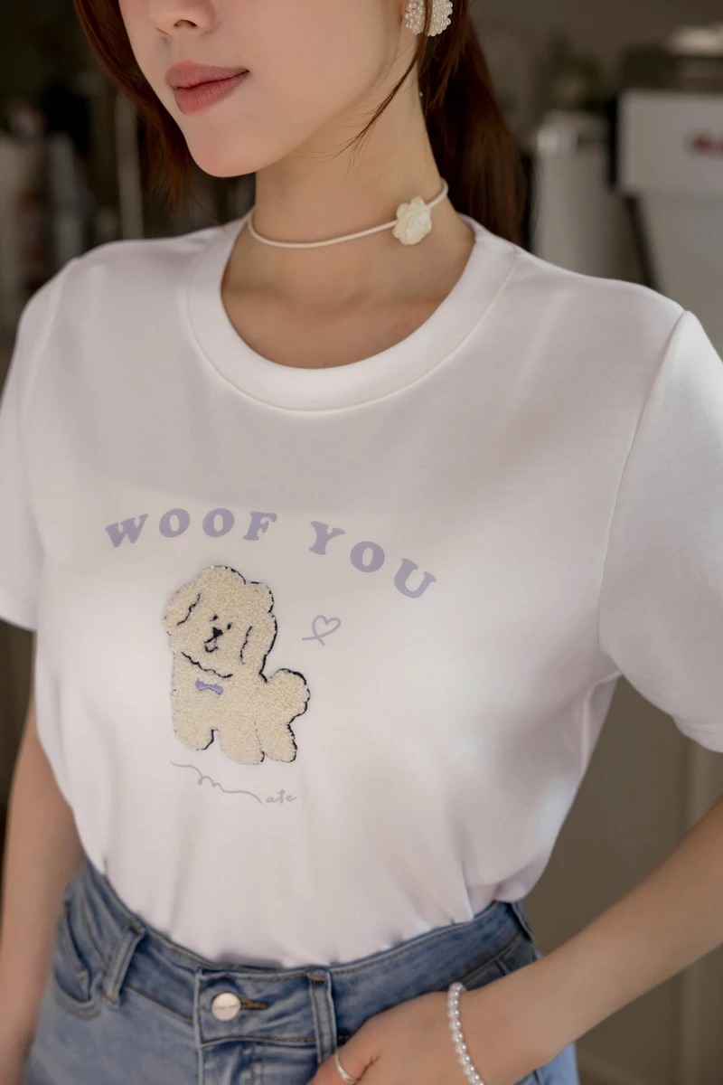 舒芙蕾系列-汪汪愛你QQ毛刺繡上衣