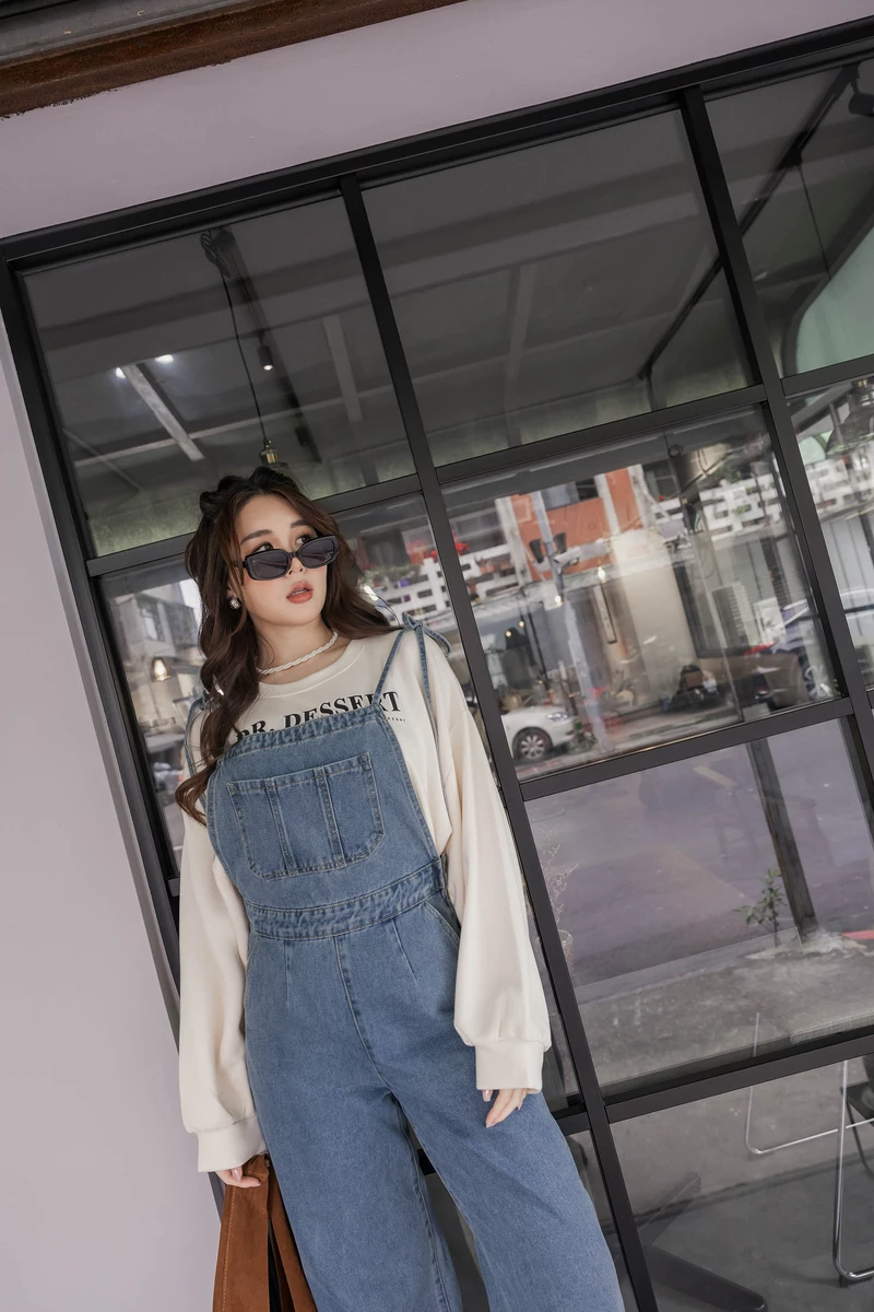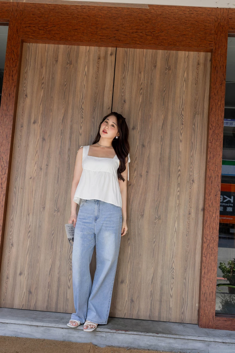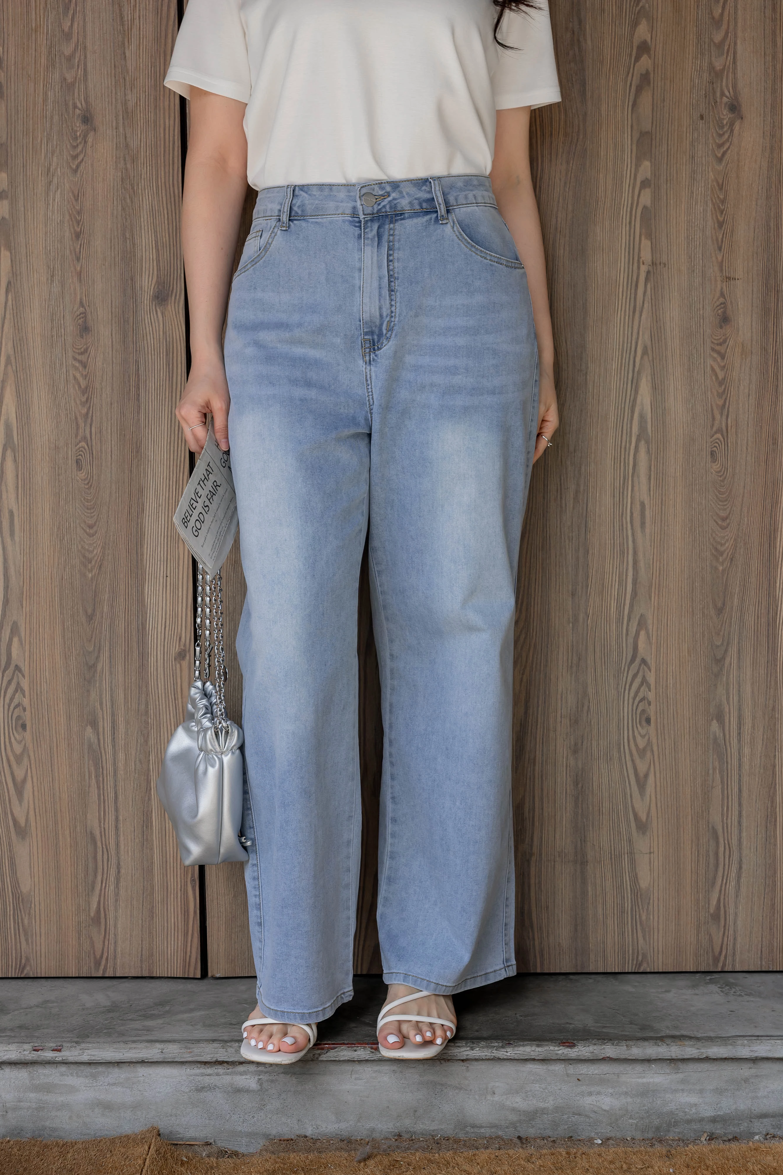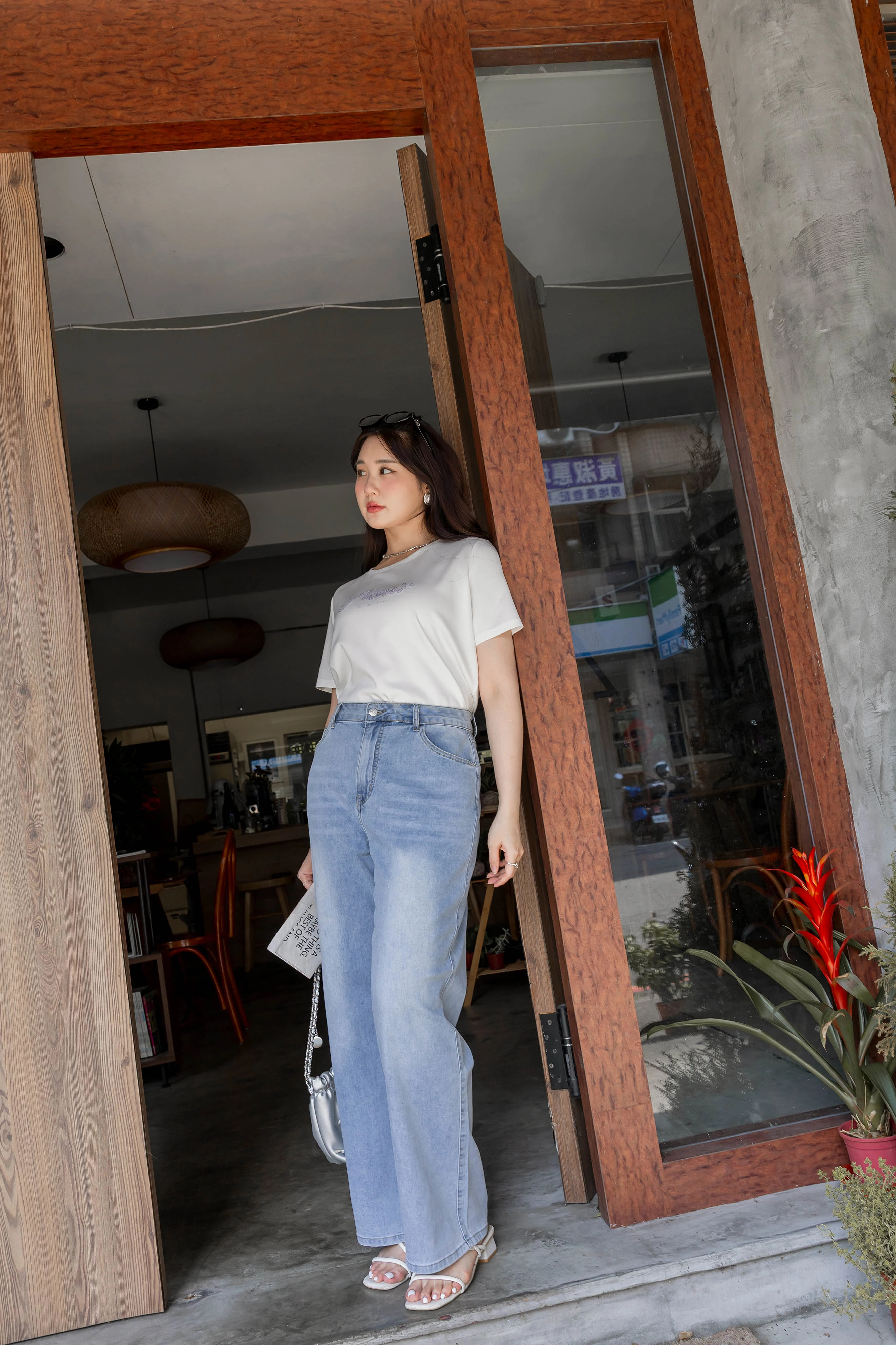 高個女限定-5KG後鬆緊刷白牛仔寬褲