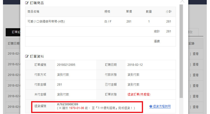 .若使用購物金購物,導致訂單金額為0元,線上申請退貨時,系統未跳出7-11/全家退貨代碼,請於七日鑑賞期內(計算起日即簽收日,包含社區管理員/親友代收簽收)私訊客服協助提供退貨代碼。