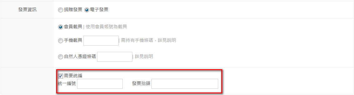 請在結帳流程中的「發票資訊」處(如下圖)填寫統一編號及發票抬頭即可。