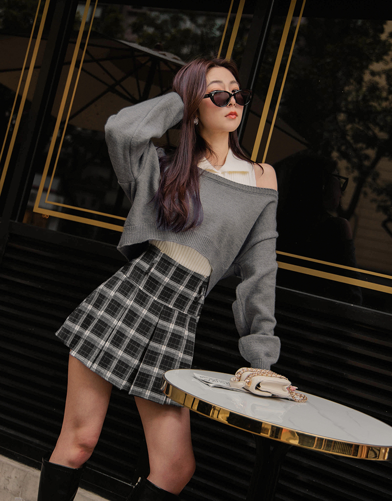 • 調色盤格紋撞色針織毛衣