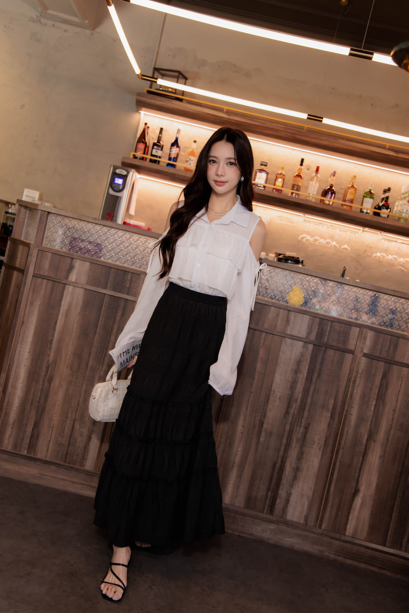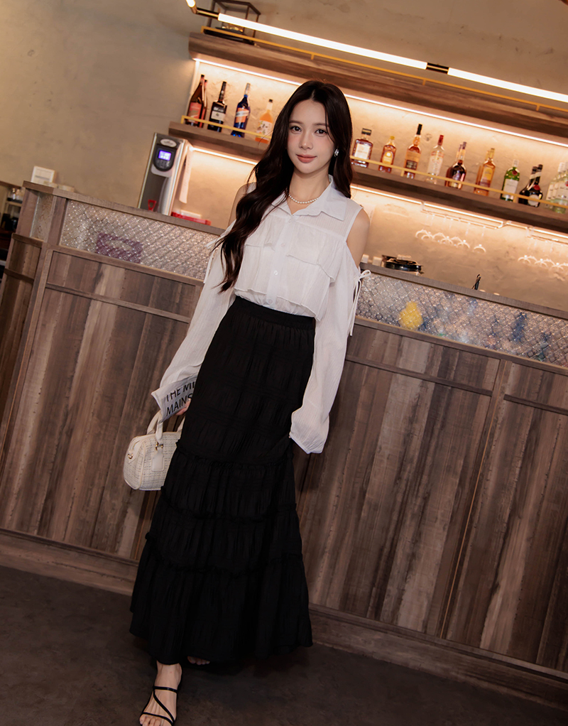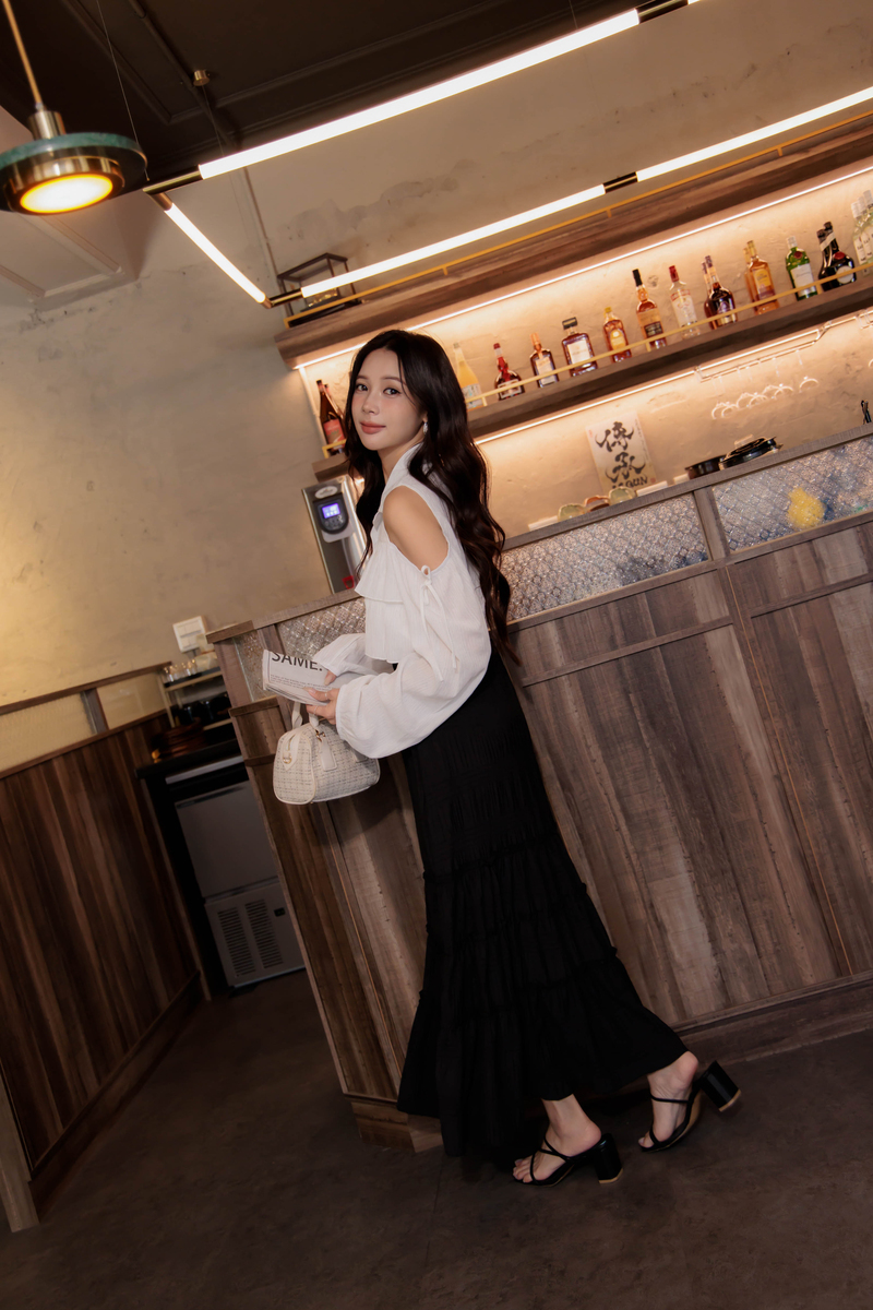 • 兩穿-排扣造型後鬆緊洋裝