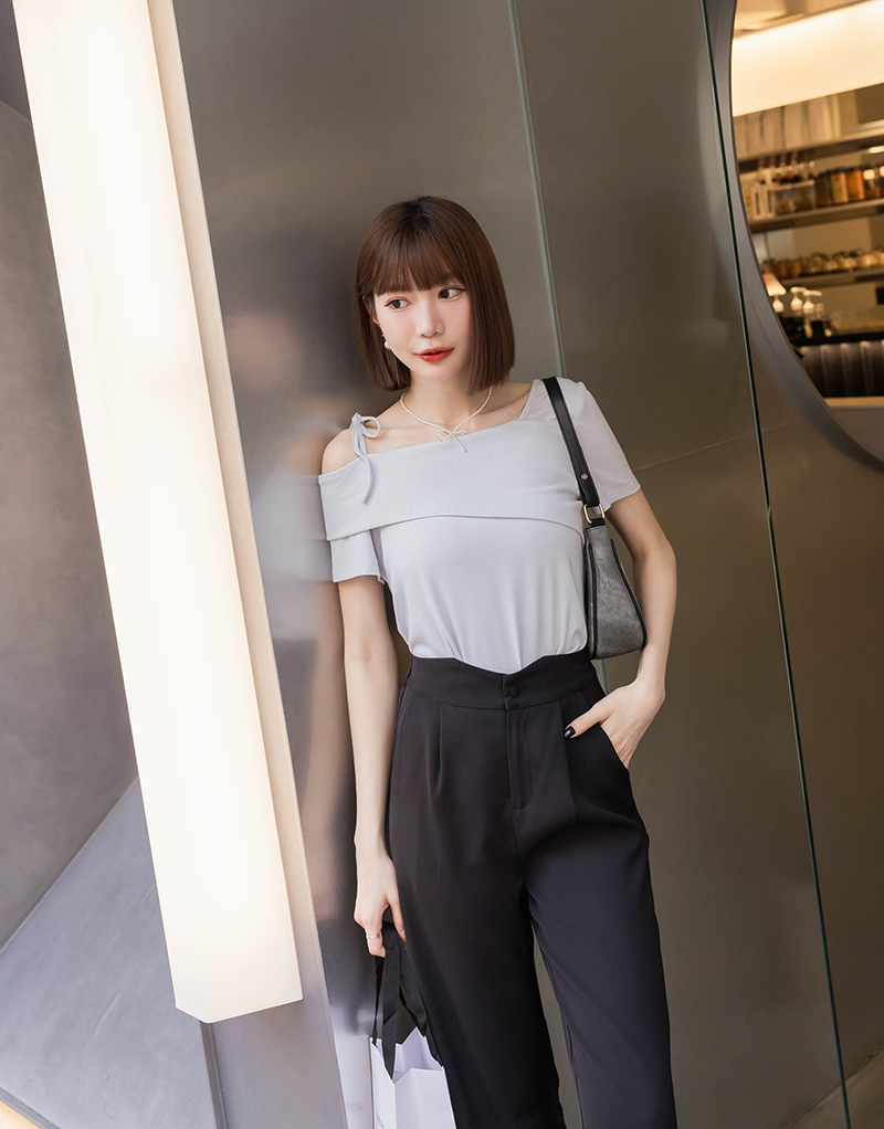 • 冰感系列-冰絲蝴蝶結刺繡上衣