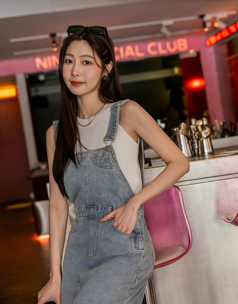 -5KG肩可調-開岔抽鬚牛仔吊帶裙