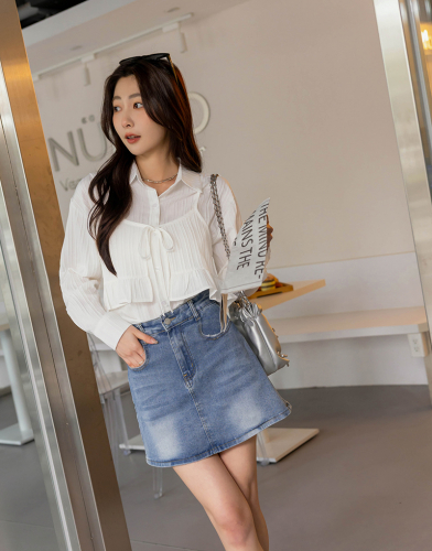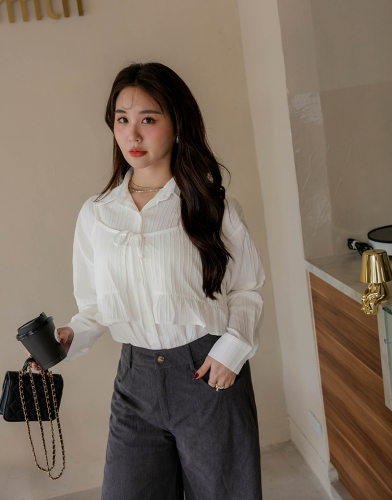 氣質木耳滾邊抓皺襯衫