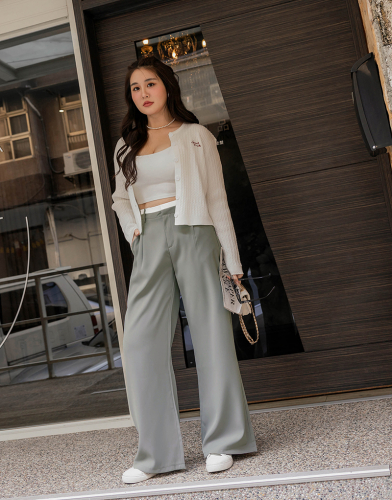 時髦撞色腰頭西裝寬褲