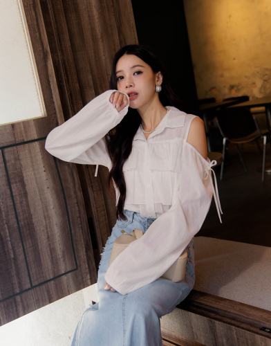 好感挖肩綁帶蛋糕襯衫