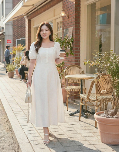 兩穿-排扣造型後鬆緊洋裝