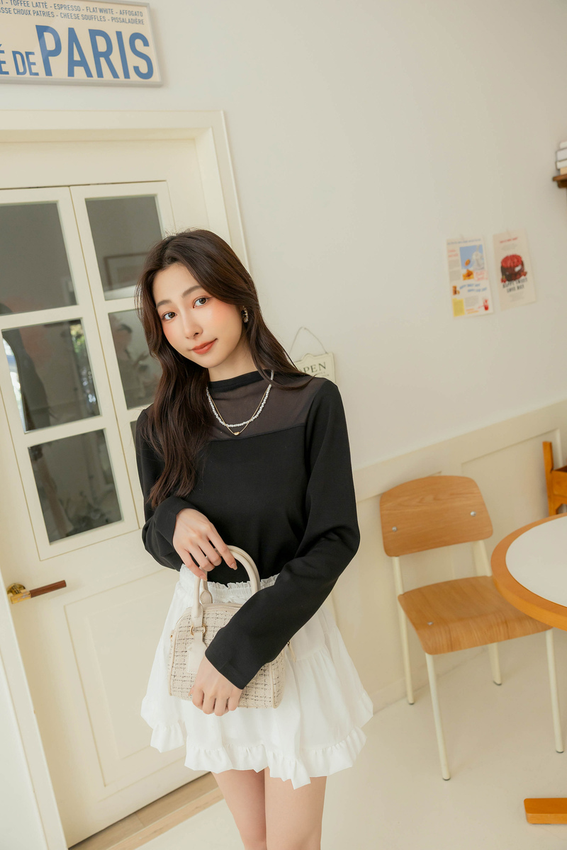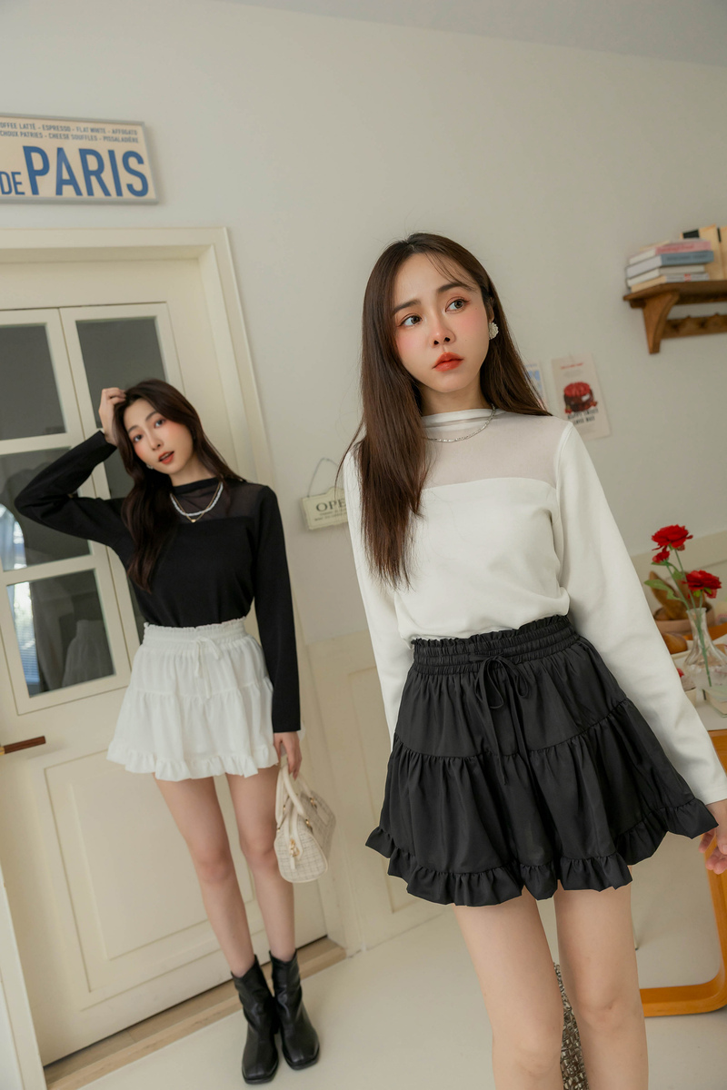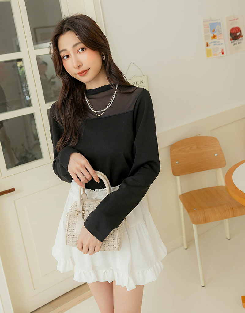 • 舒芙蕾系列-刺繡蝴蝶結短版上衣