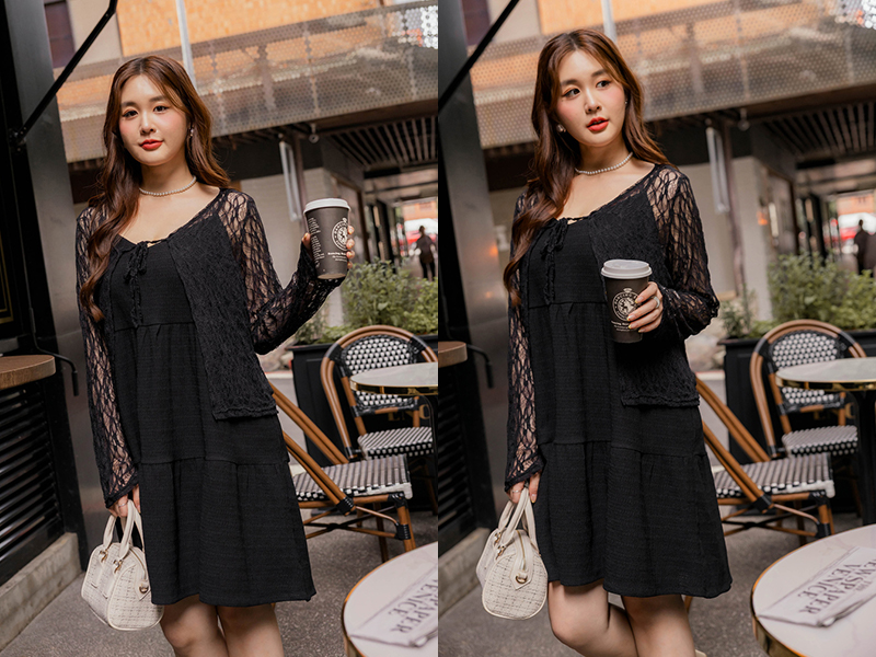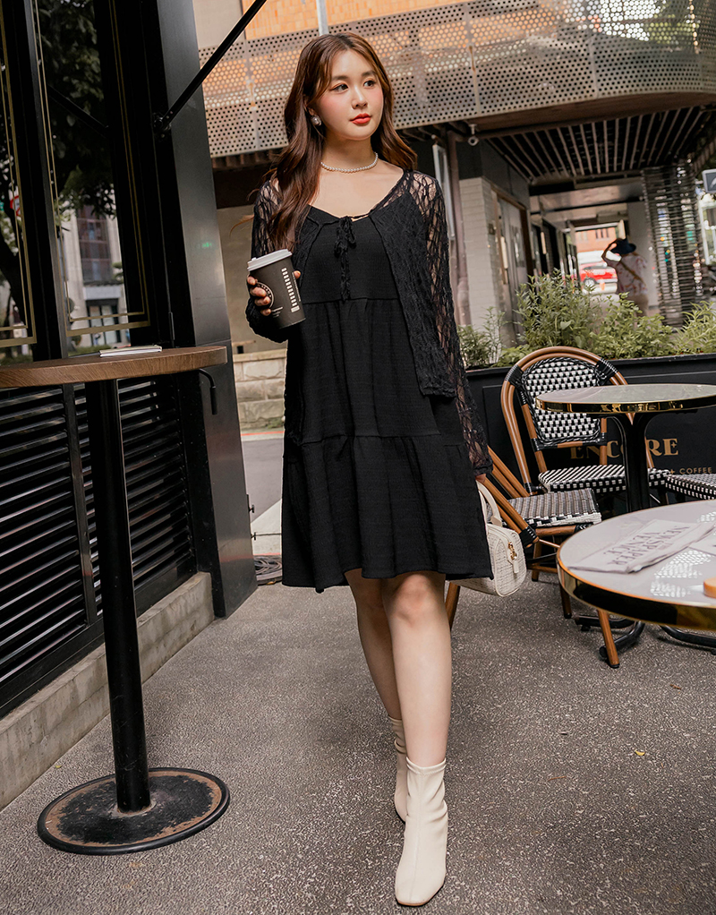 • 心機美腿系列-貓耳開岔水洗棉裙