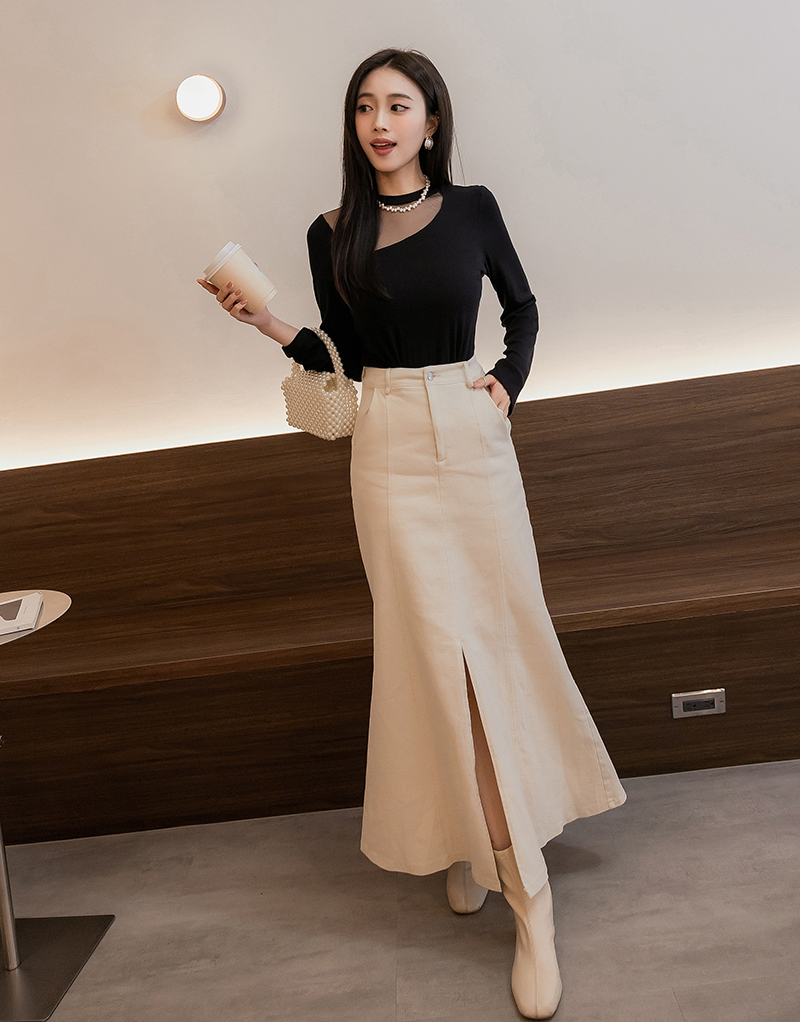 • 高個女孩限定-美腿開岔魚尾水洗棉裙