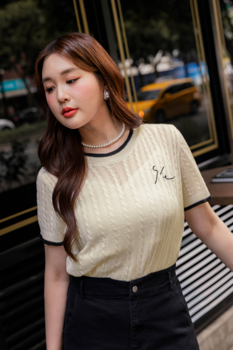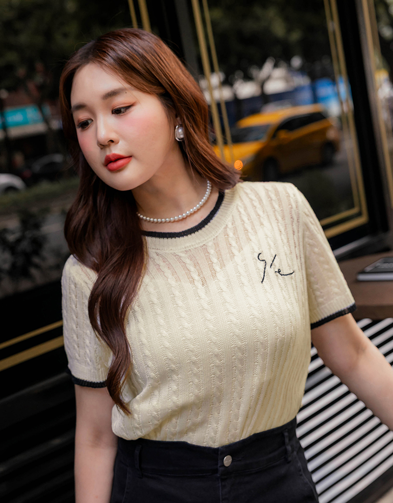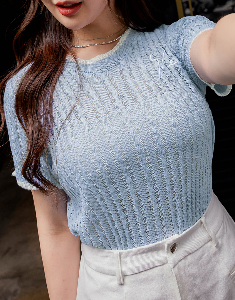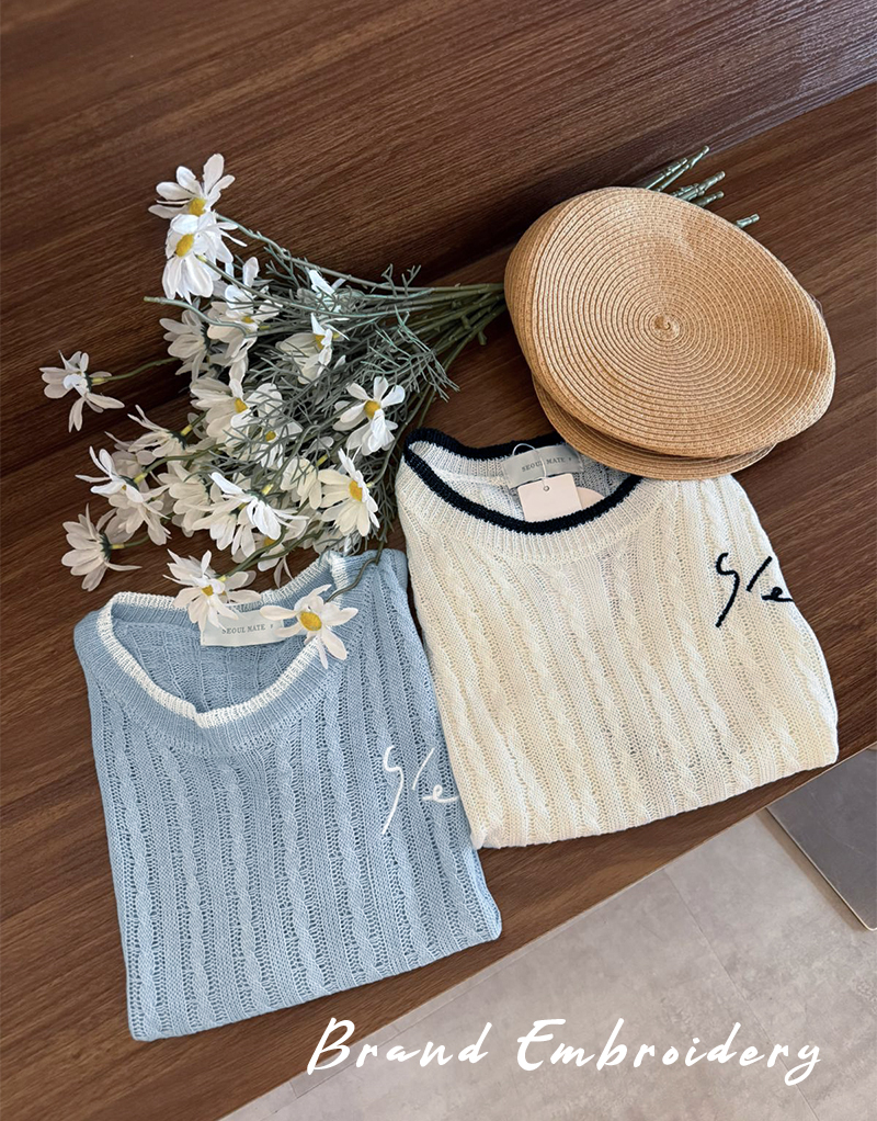 品牌系列-刺繡撞色薄針織上衣