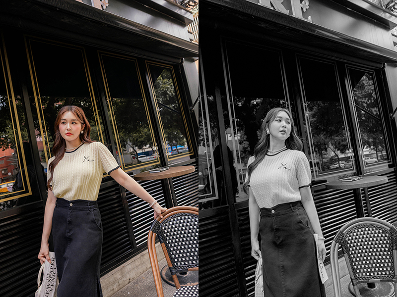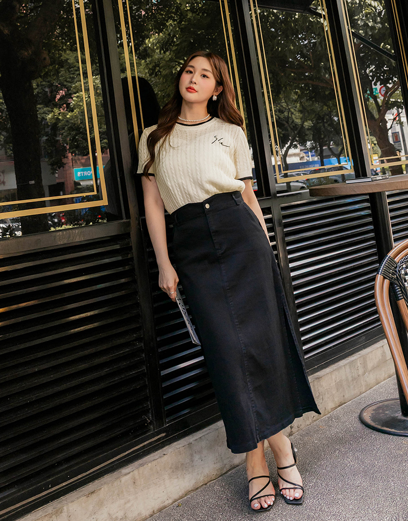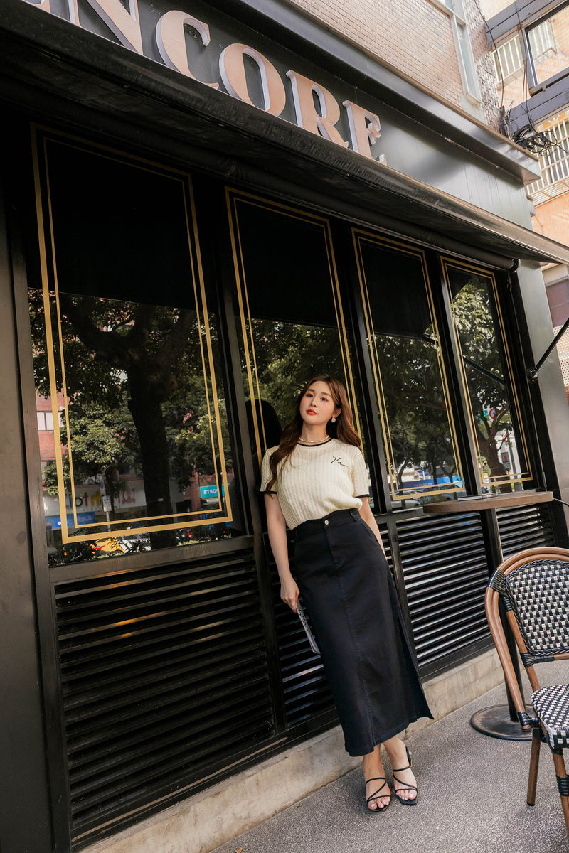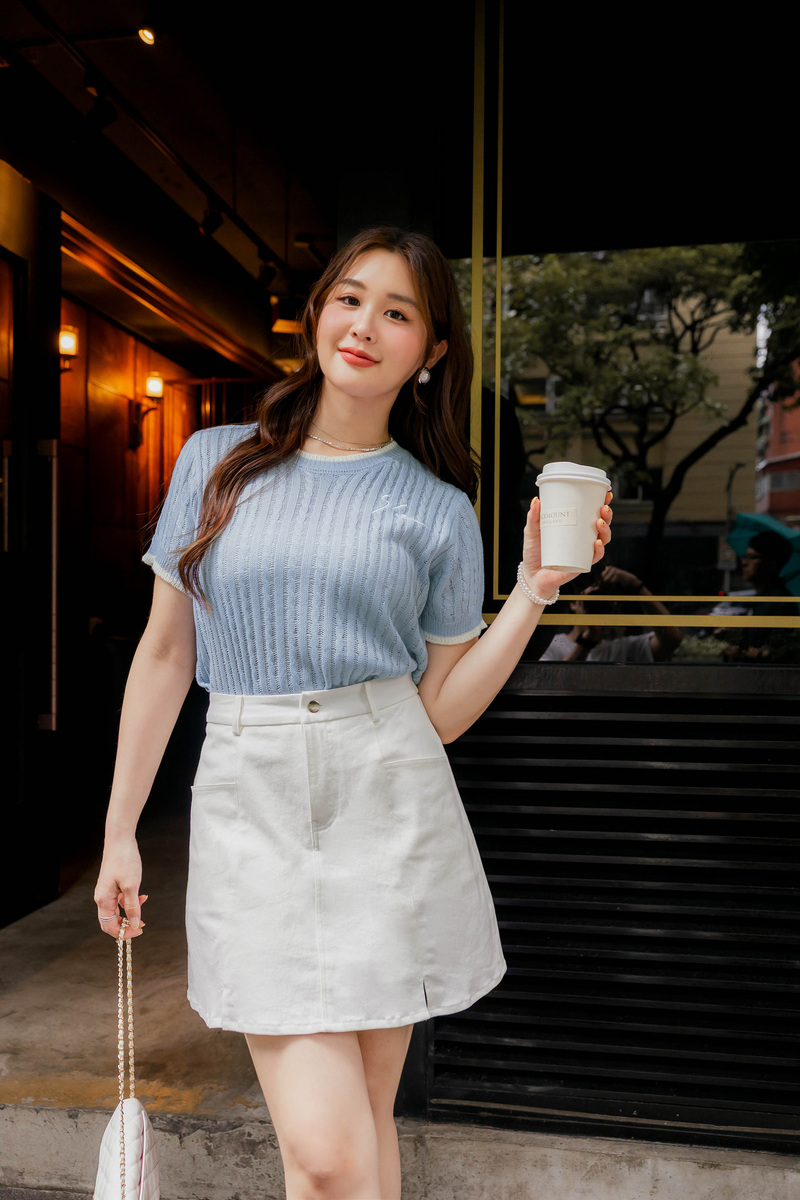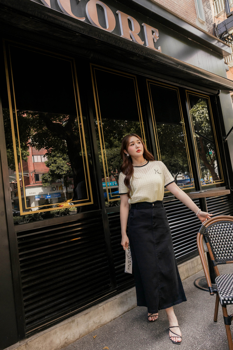 品牌系列-刺繡撞色薄針織上衣