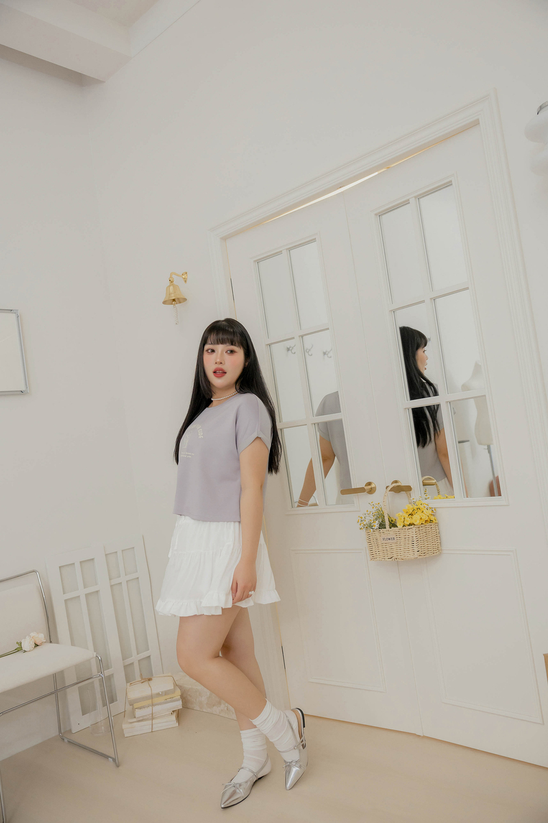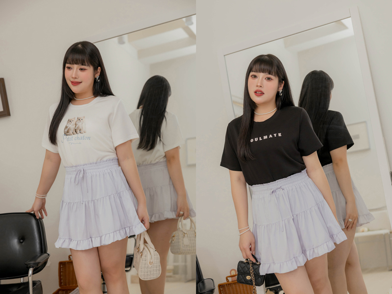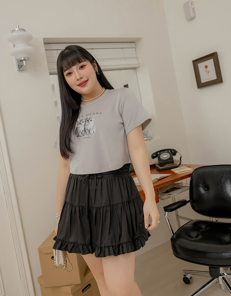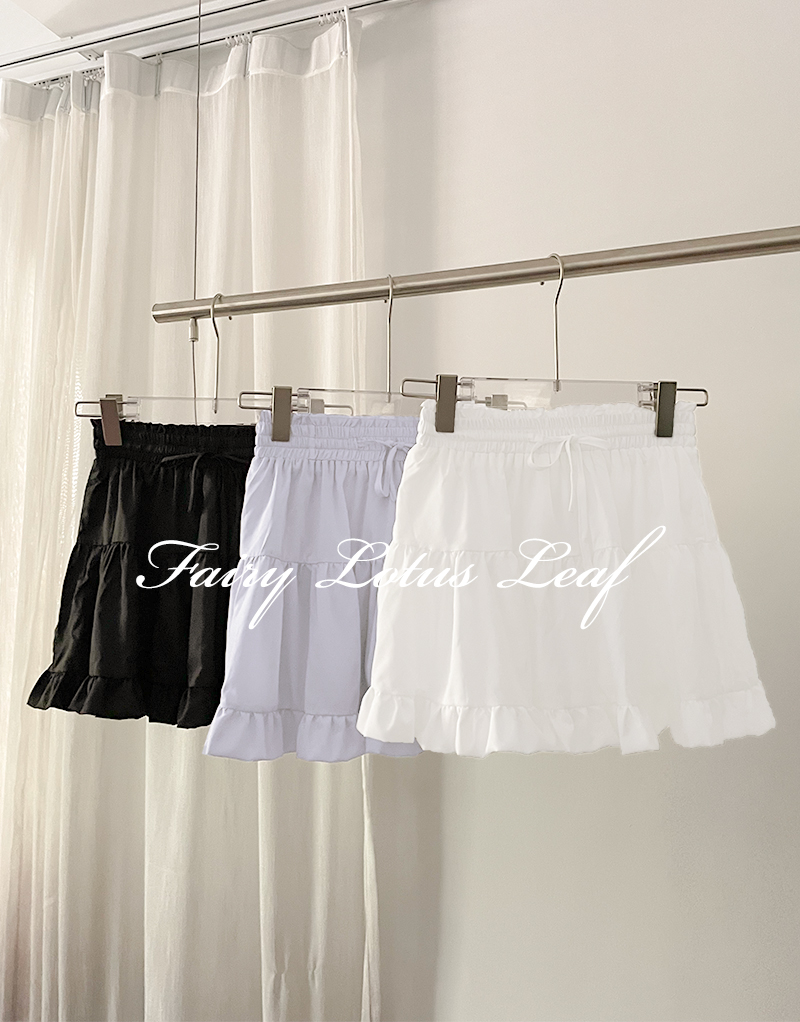 唯美鬆緊腰蛋糕滾邊褲裙