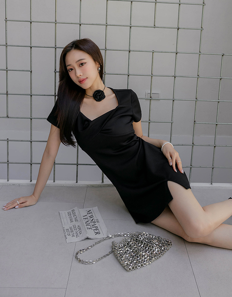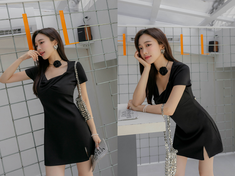 舒芙蕾系列-美胸扭結開岔洋裝