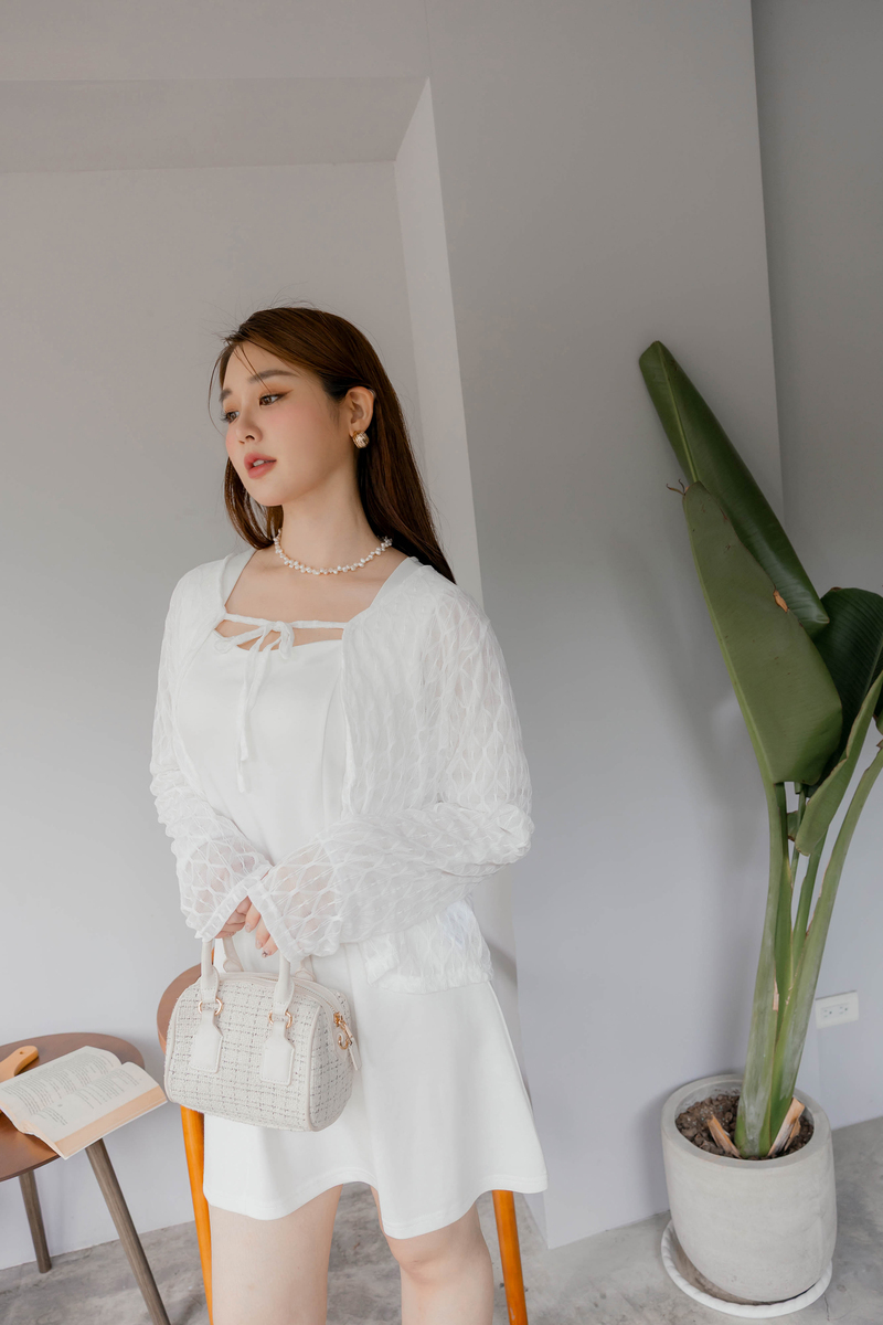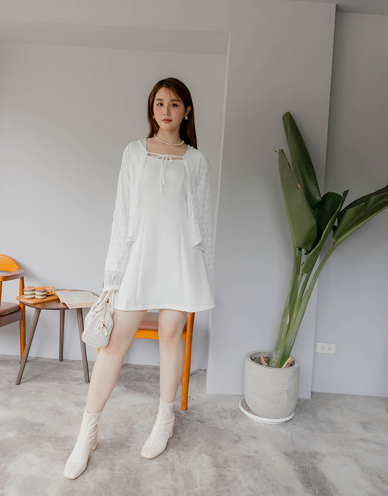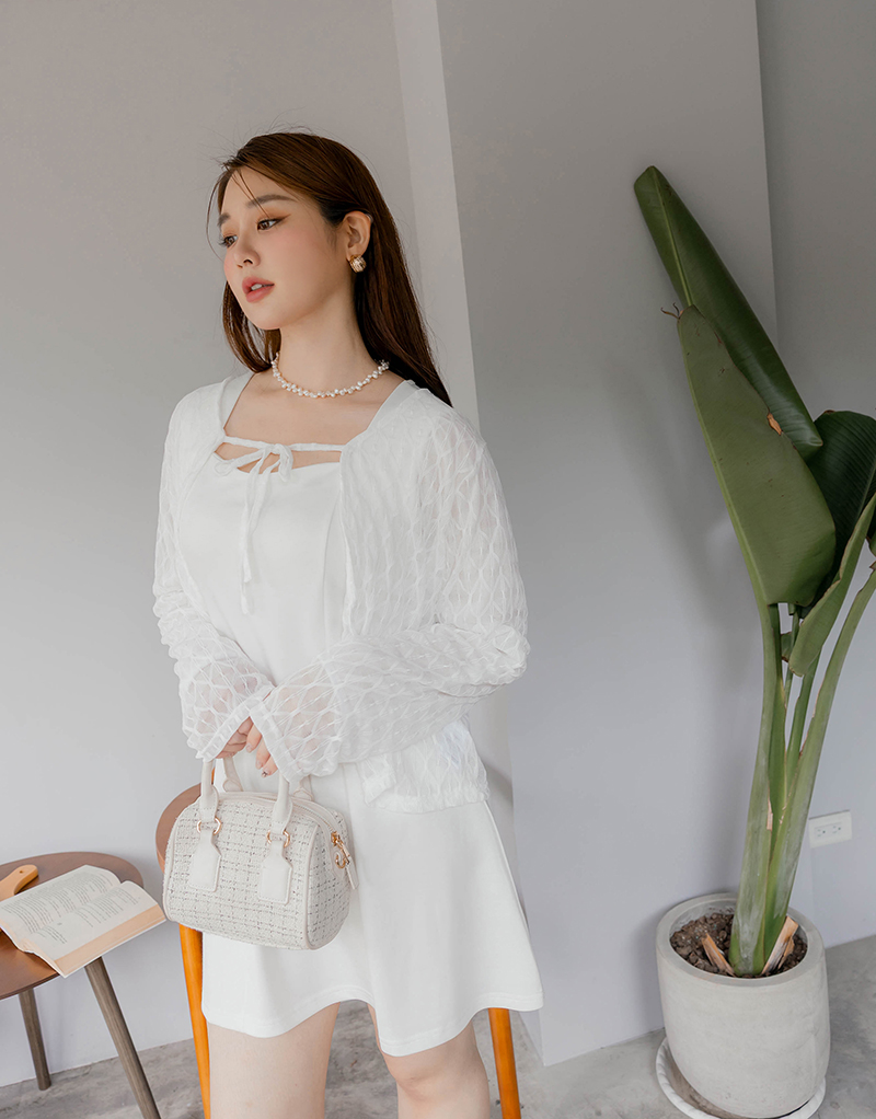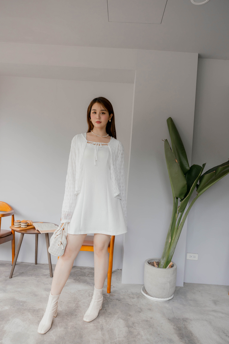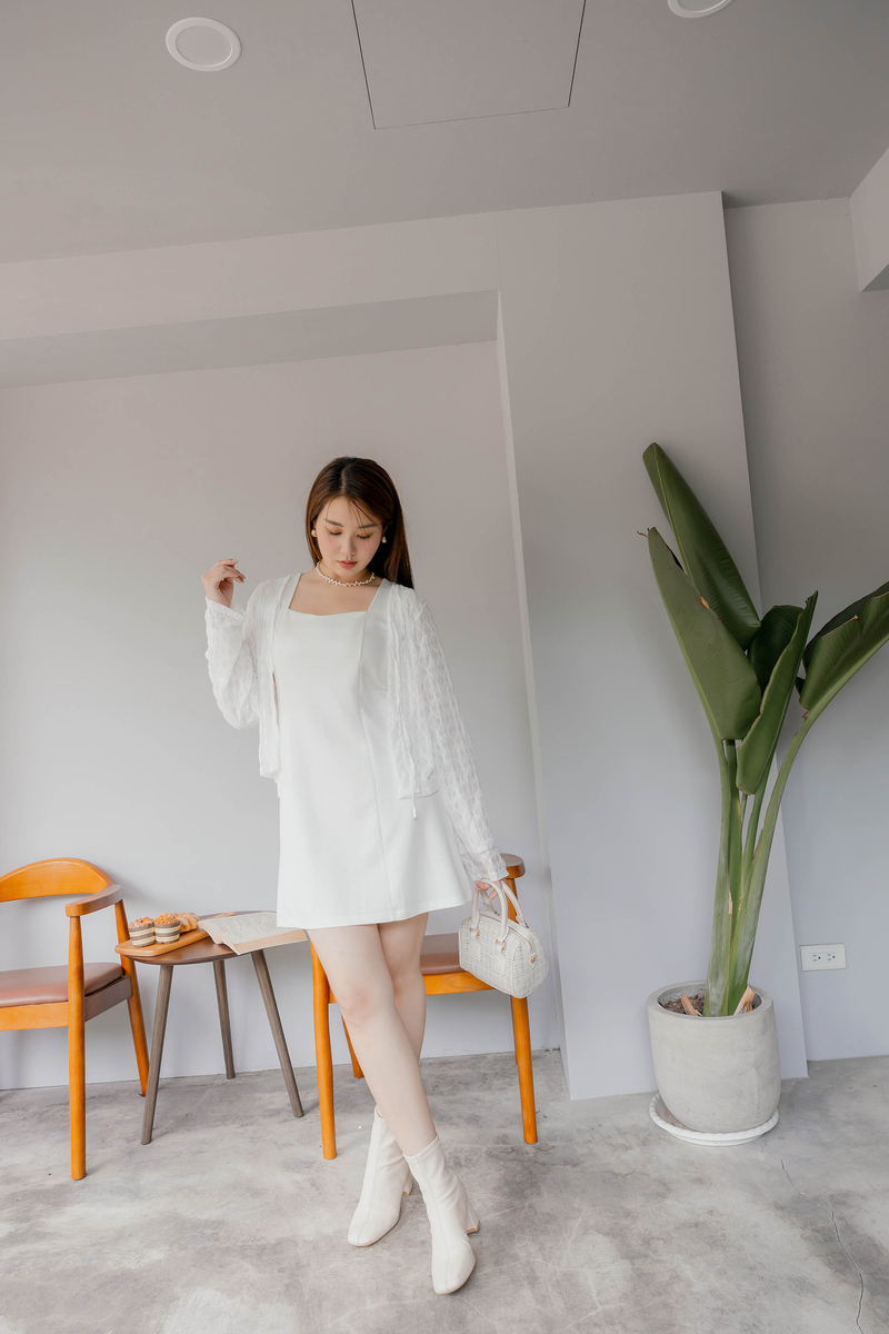 • 舒芙蕾系列-桃心領透膚袖洋裝