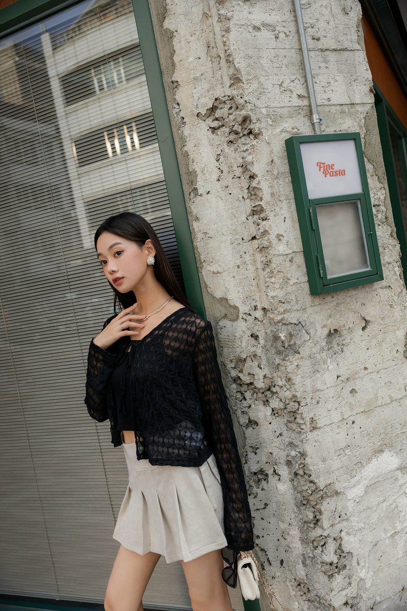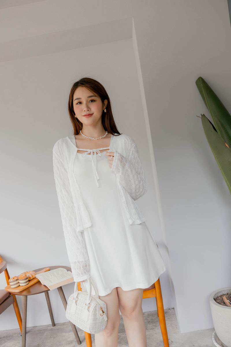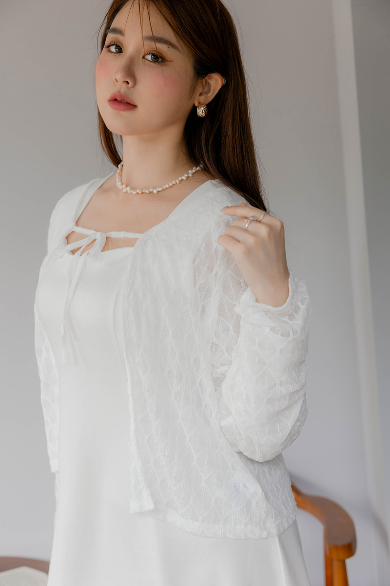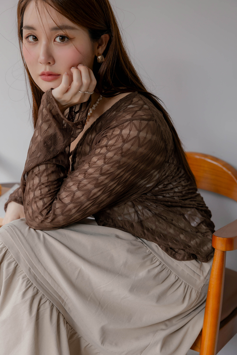 • 舒芙蕾系列-桃心領透膚袖洋裝
