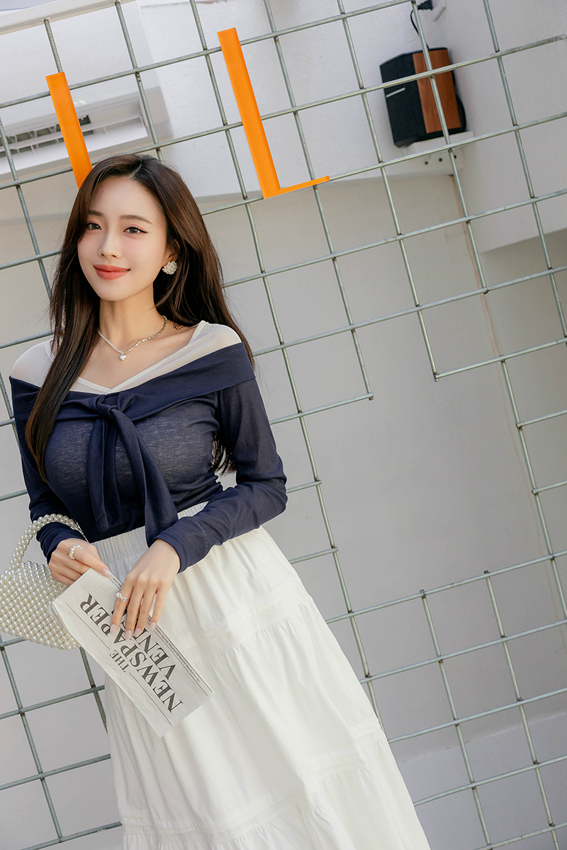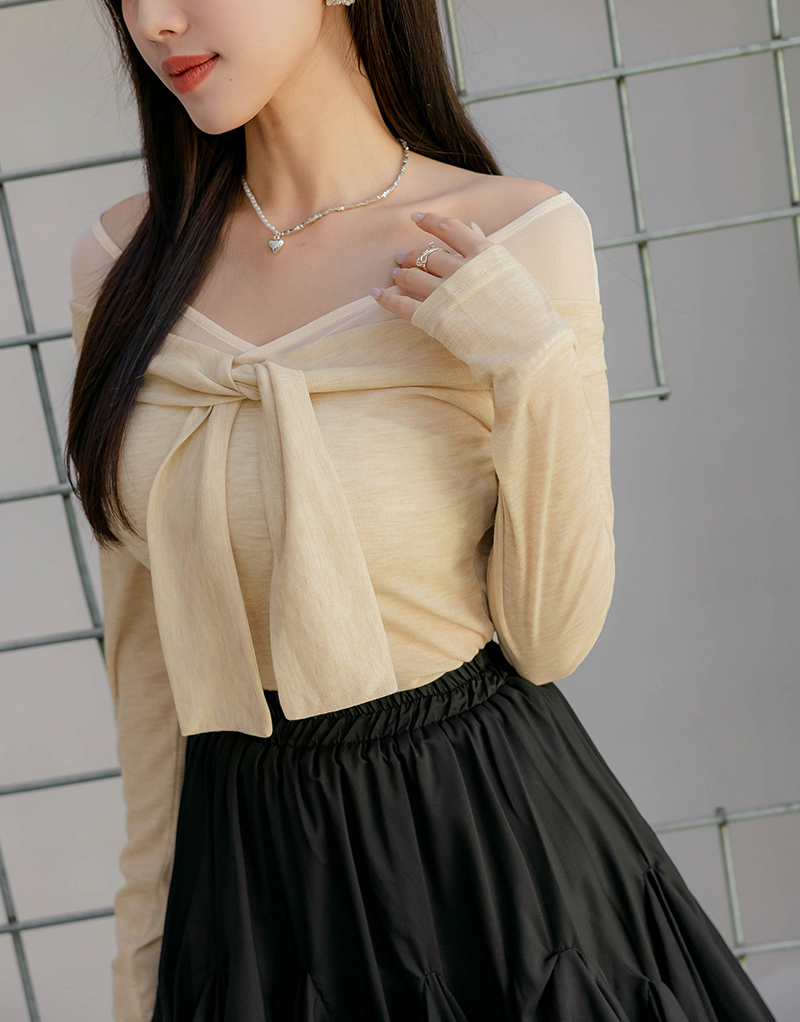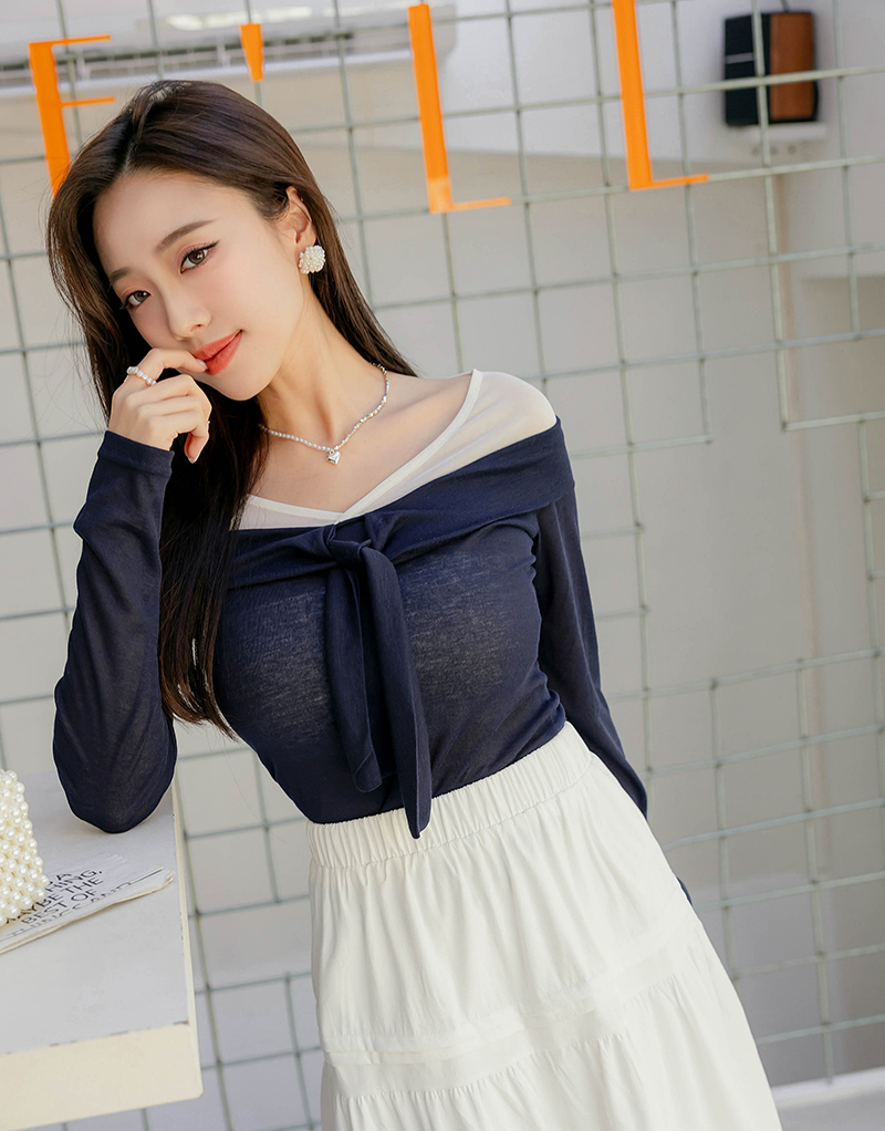 七分甜假兩件撞色綁帶上衣