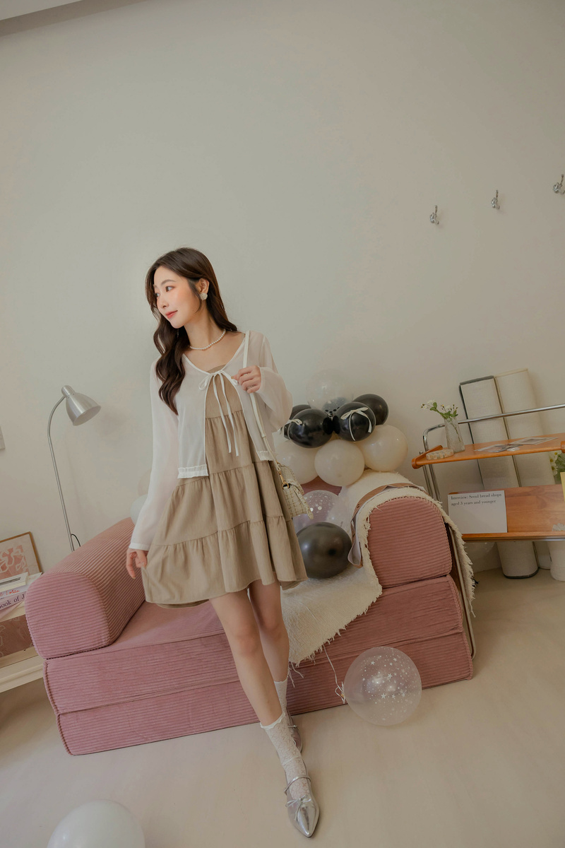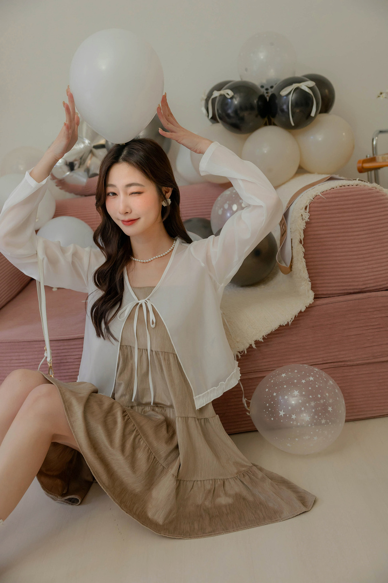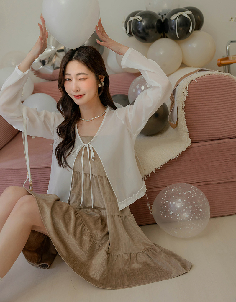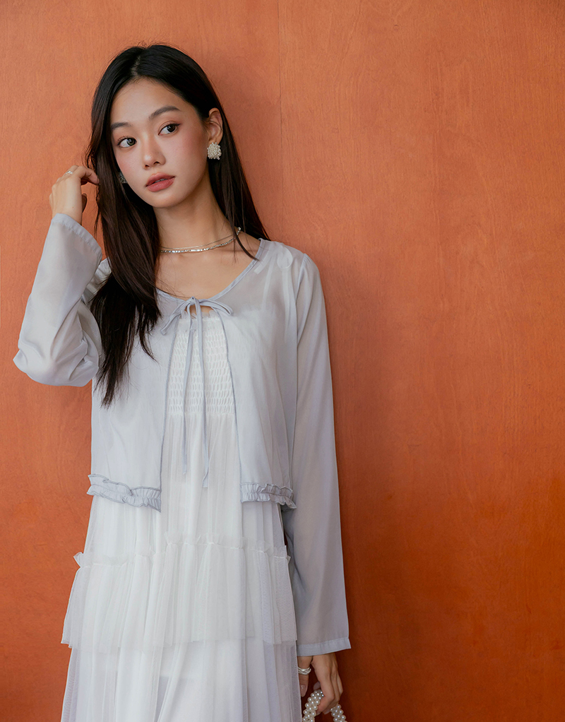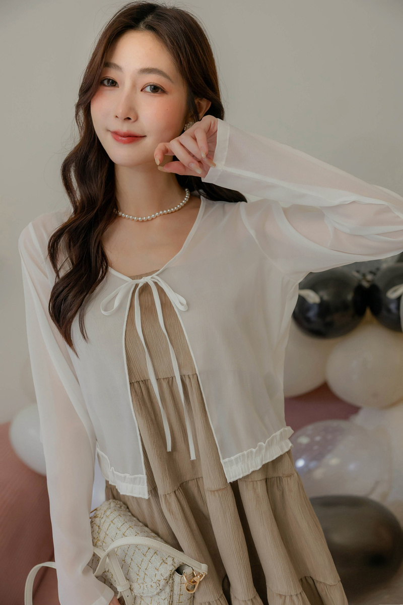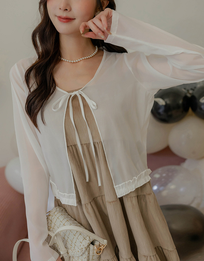 柔美擠花綁帶透膚罩衫