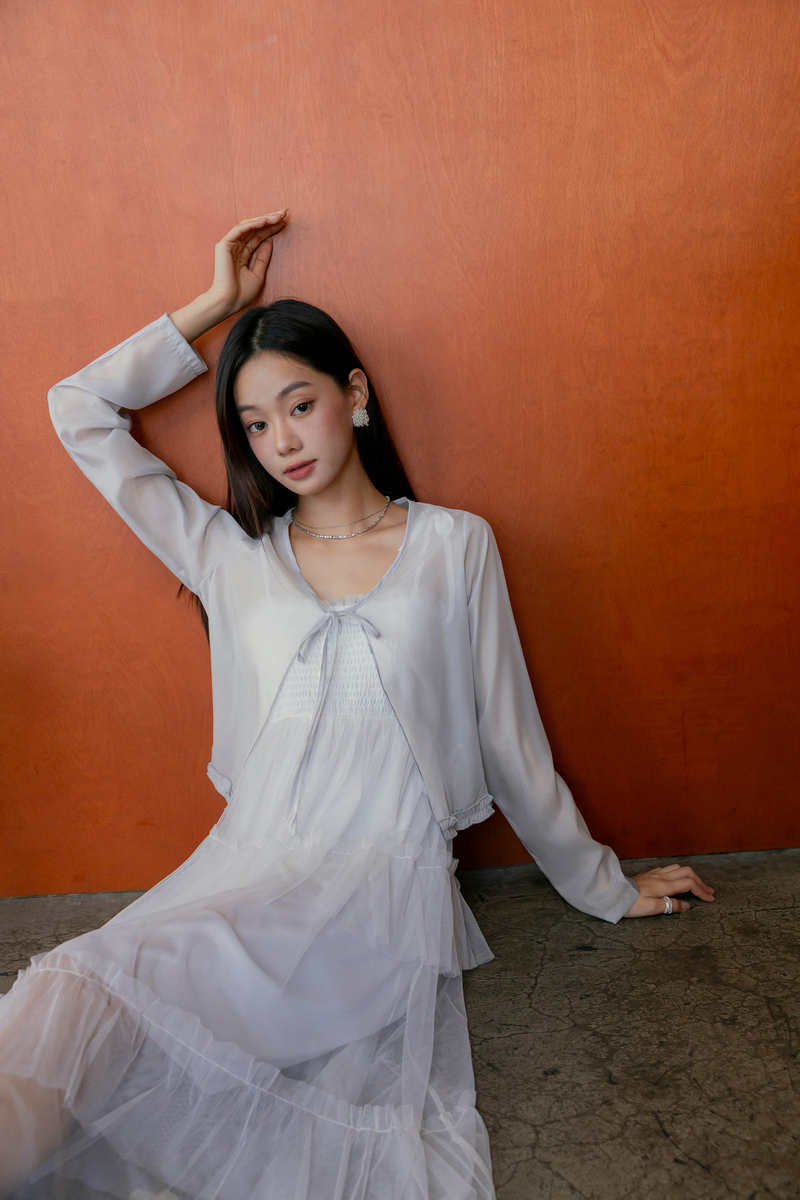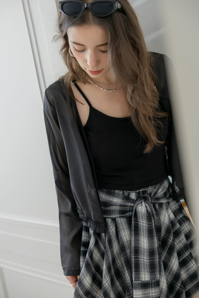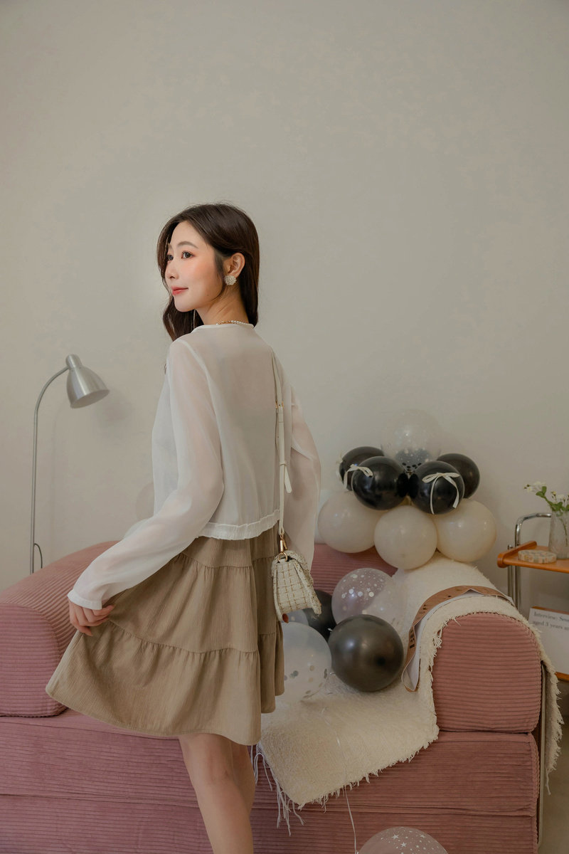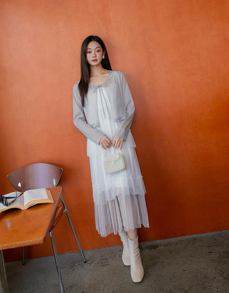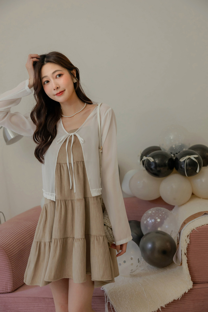 柔美擠花綁帶透膚罩衫