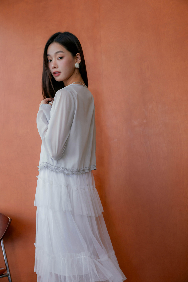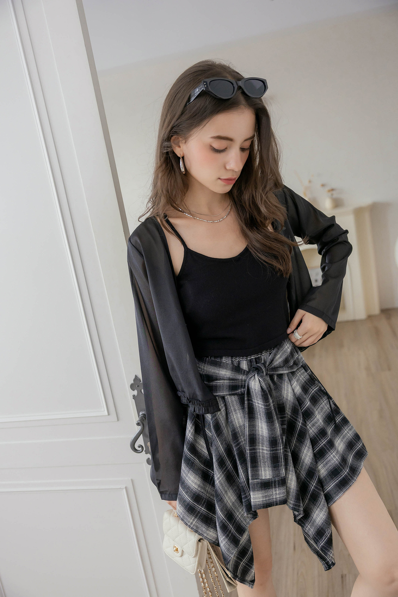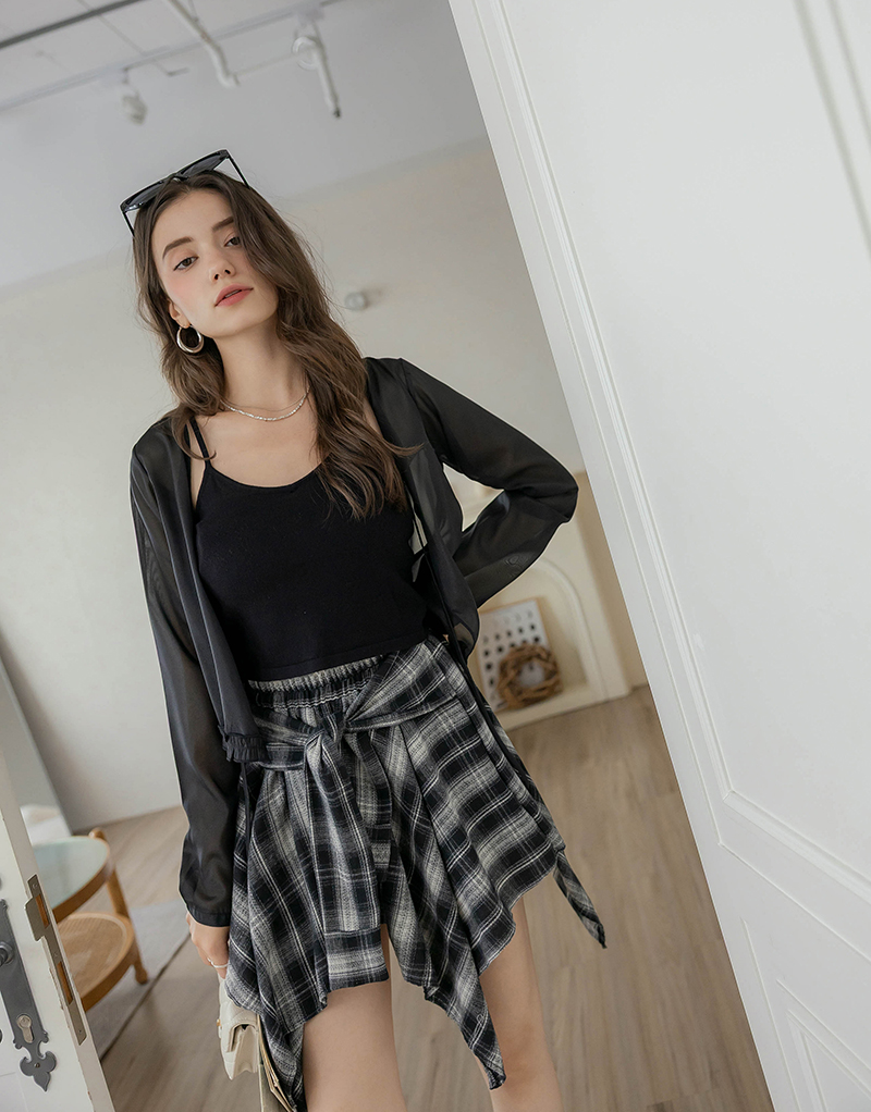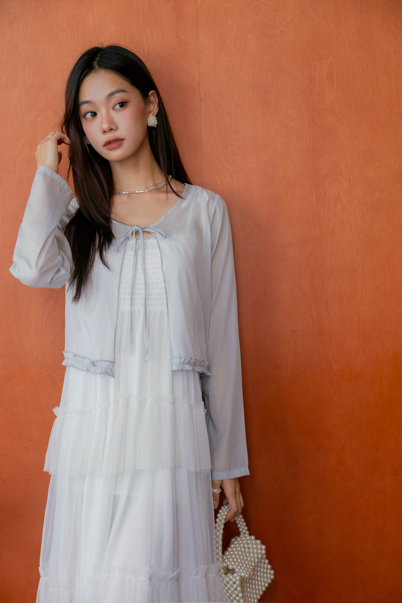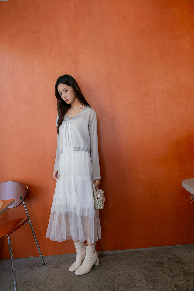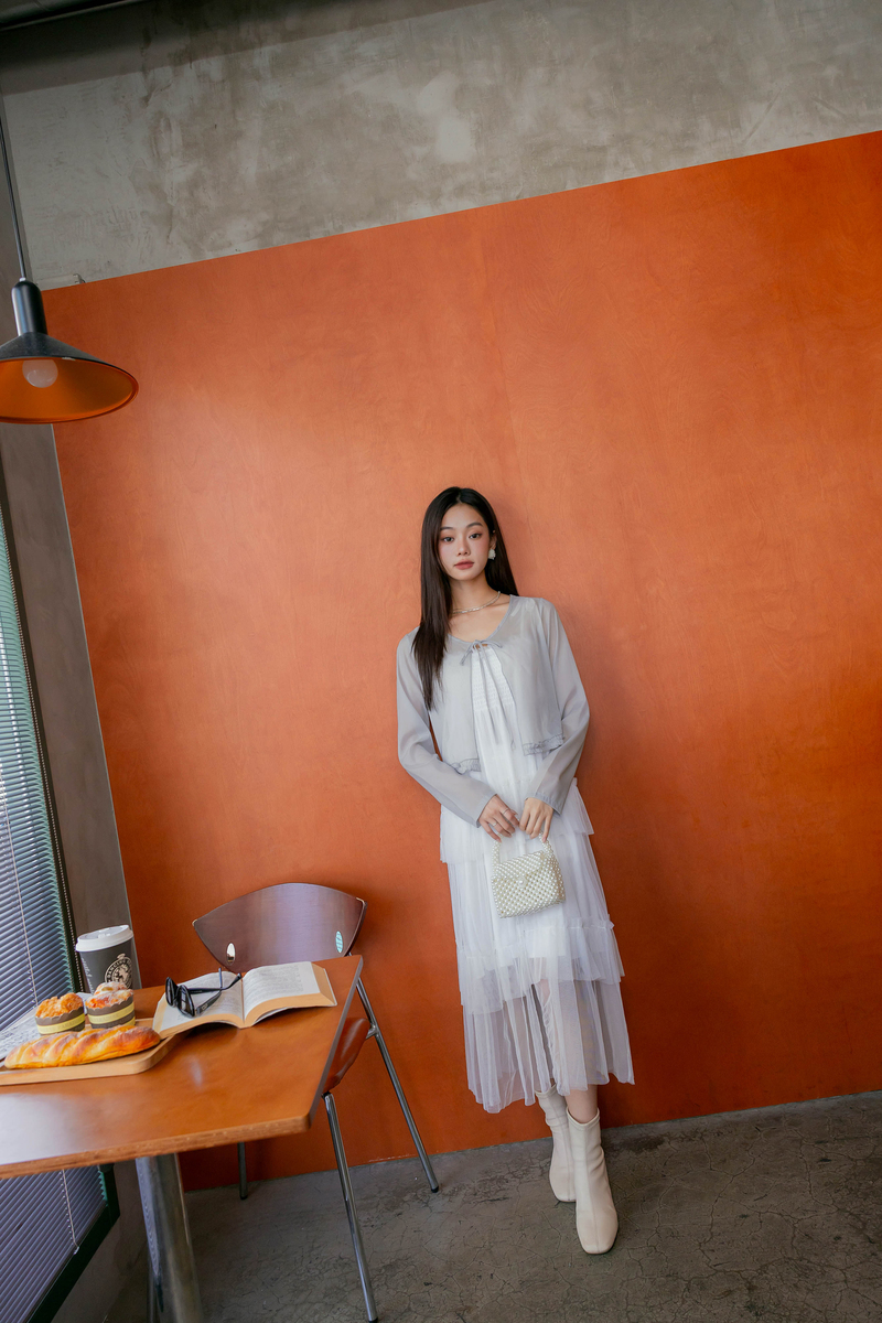 柔美擠花綁帶透膚罩衫