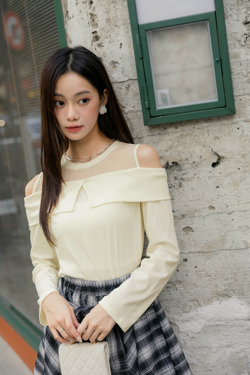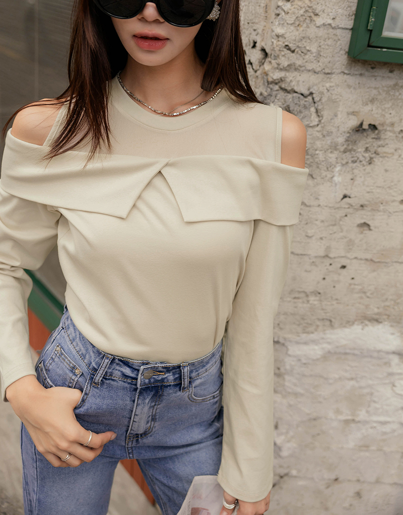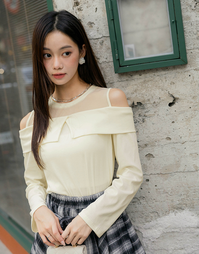 異材質透膚挖肩上衣
