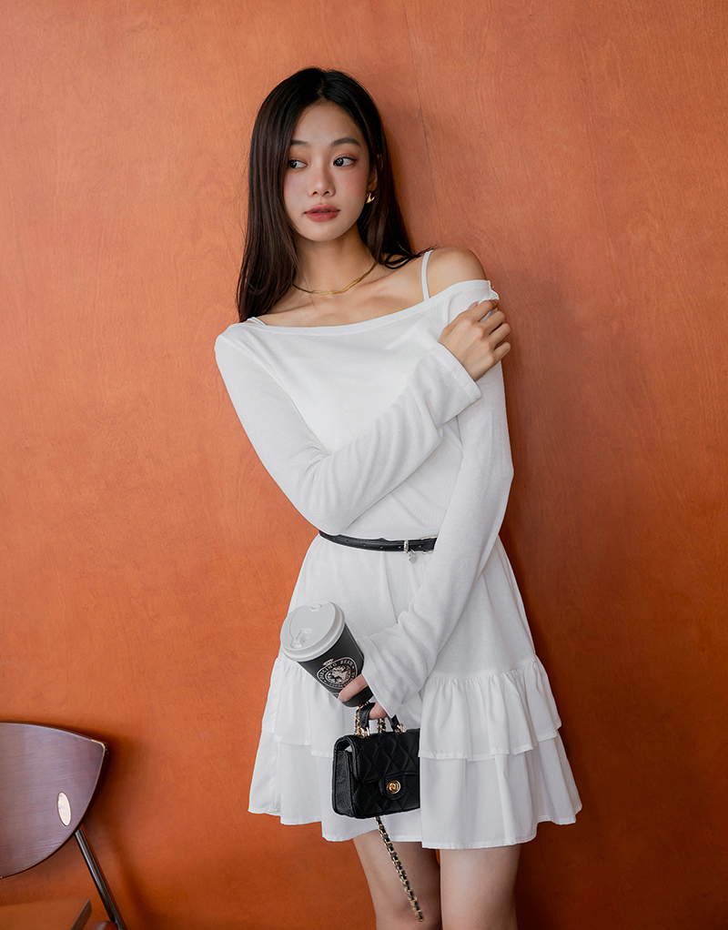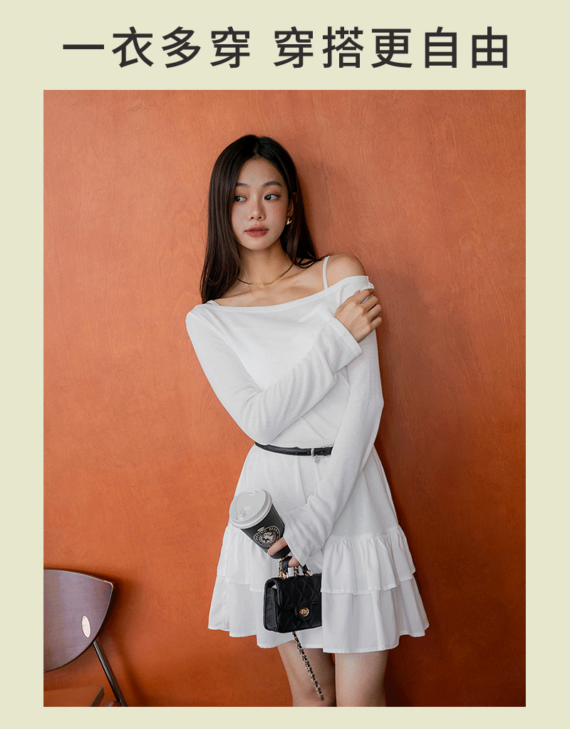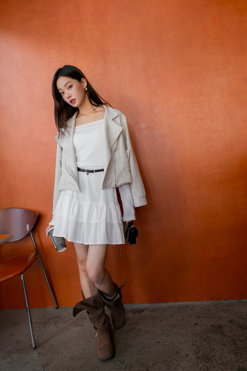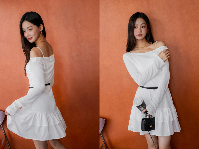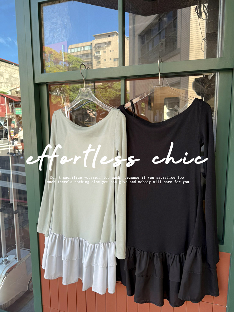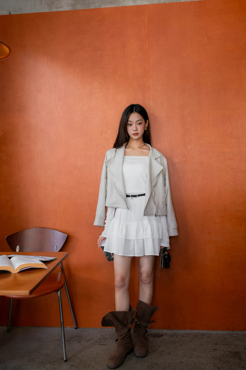 • 兩件式-附綁帶磨毛格紋洋裝套組