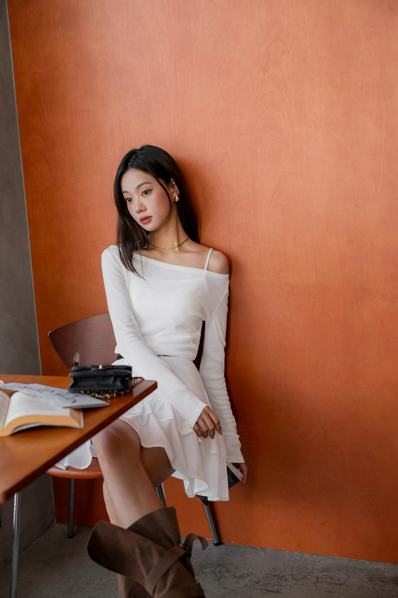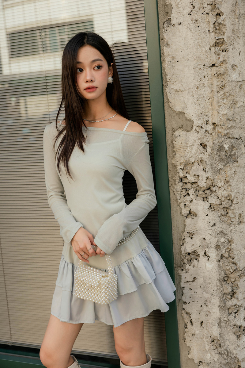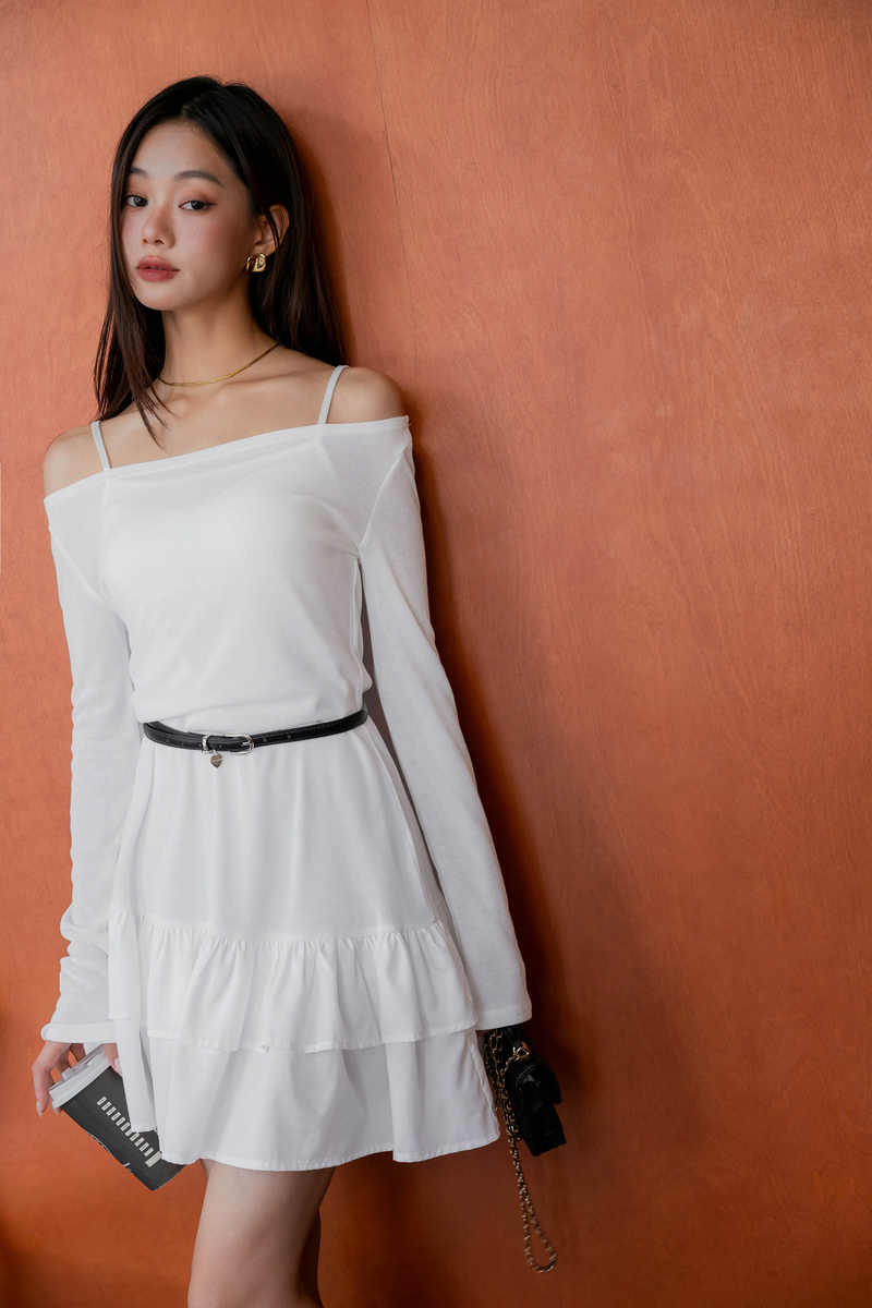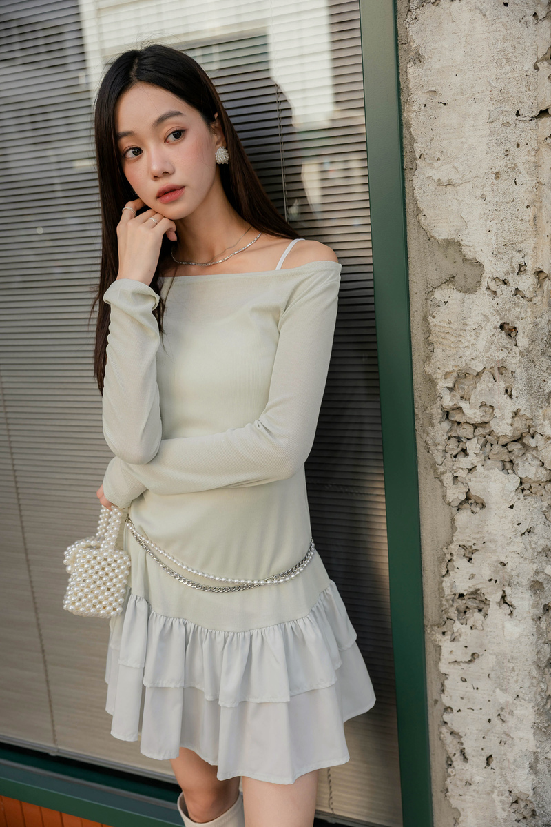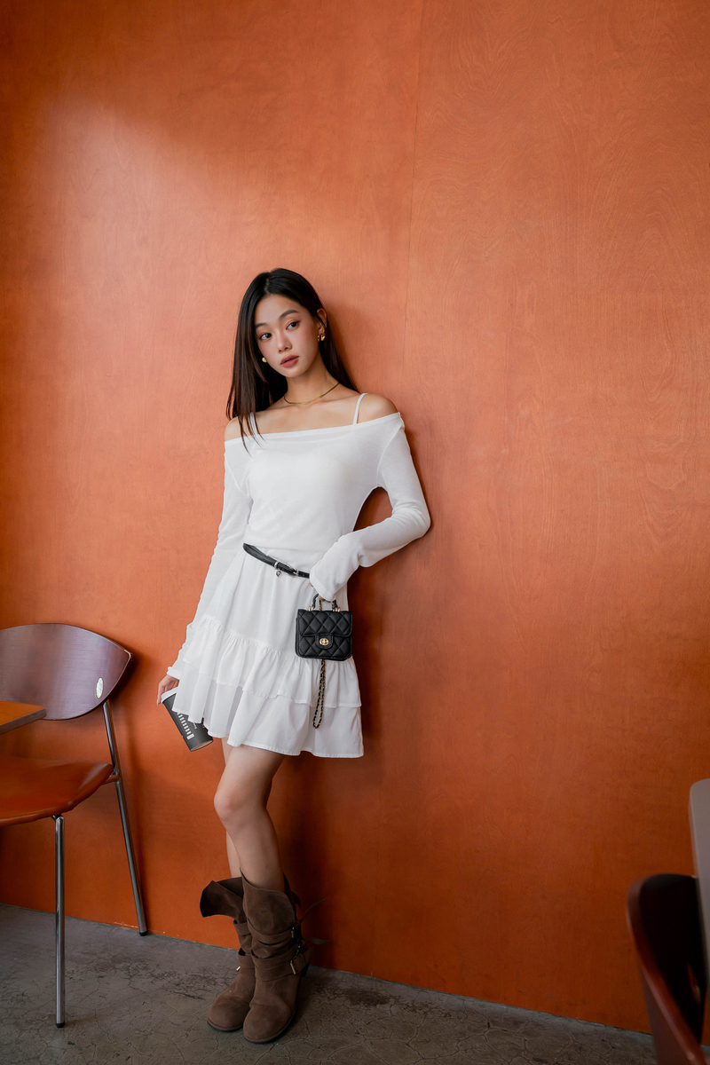 • 兩件式-附綁帶磨毛格紋洋裝套組