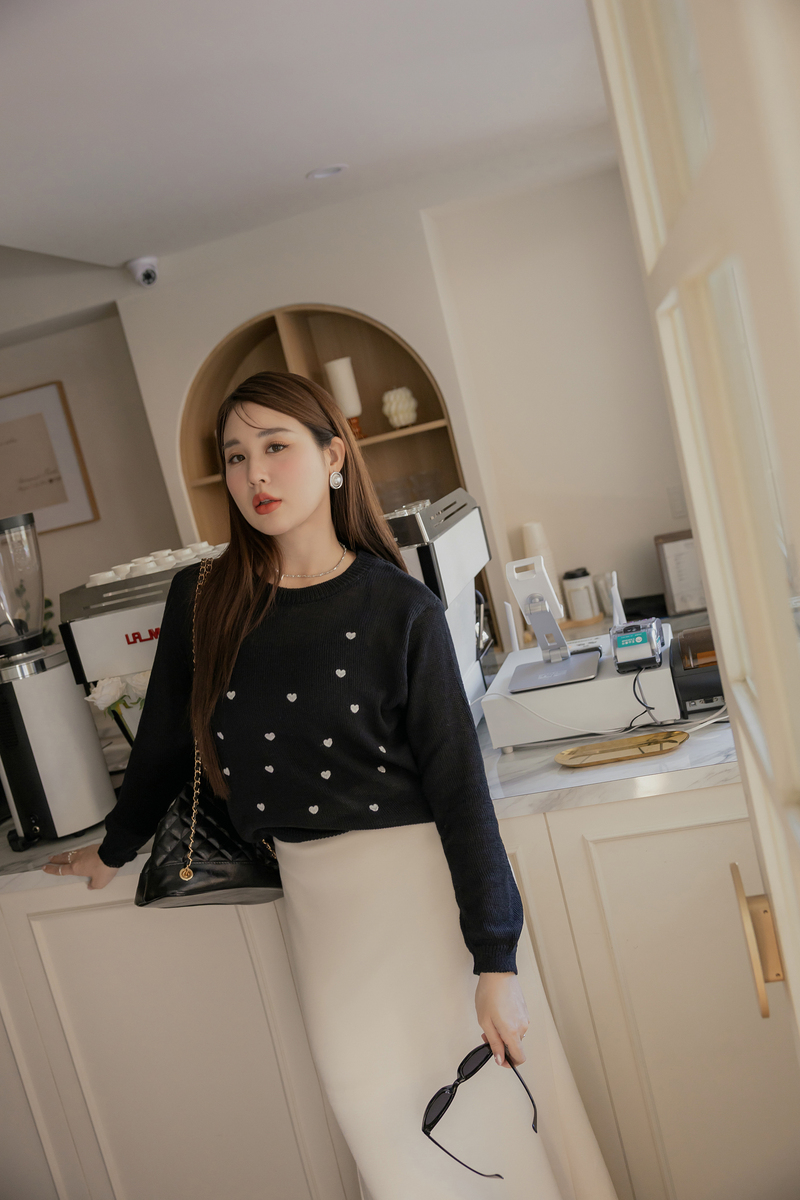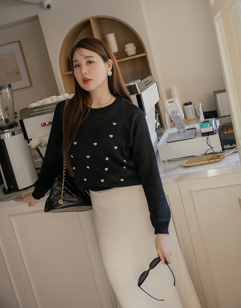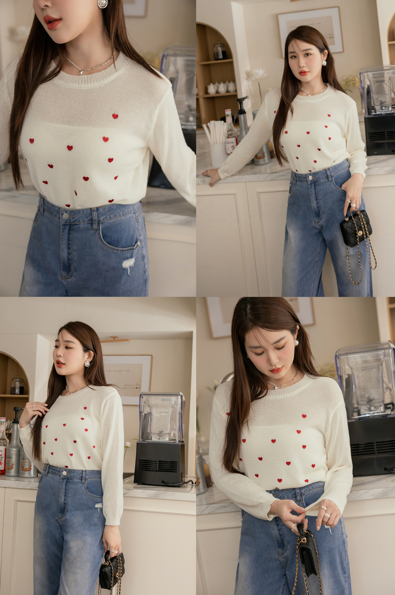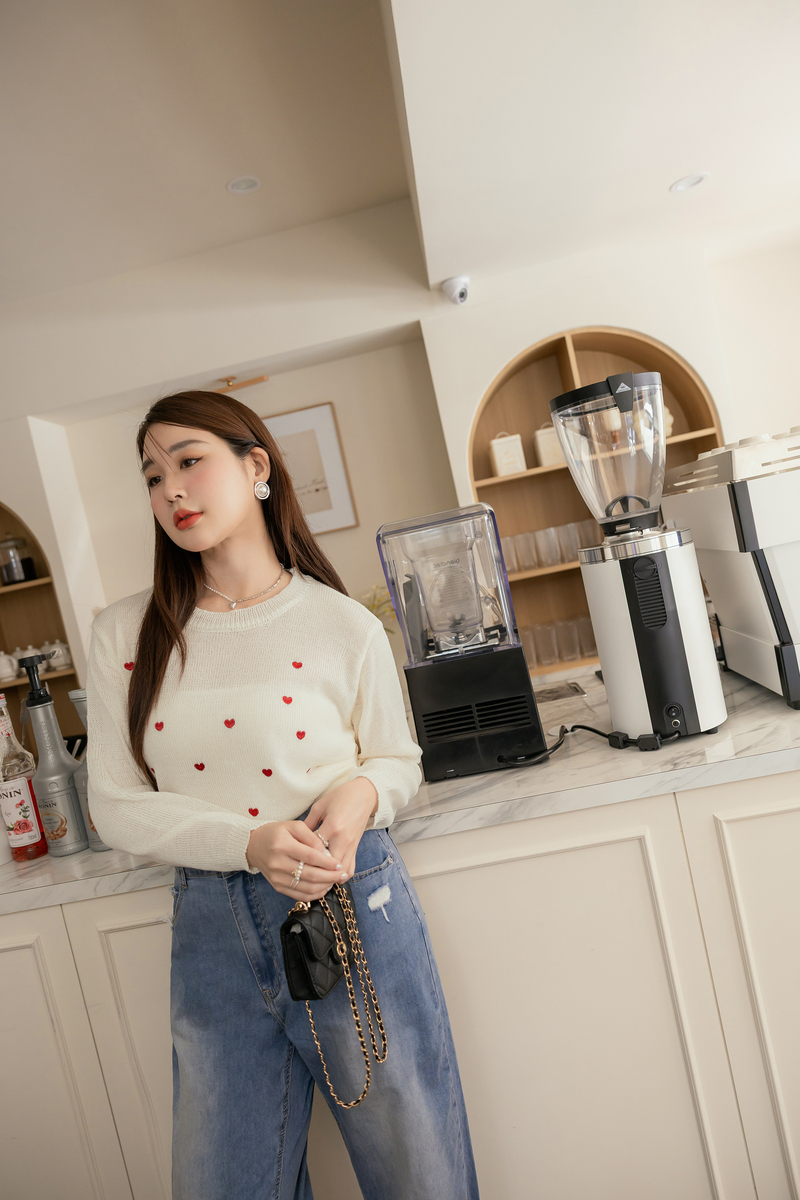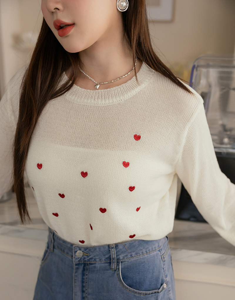 甜甜的愛心刺繡針織上衣