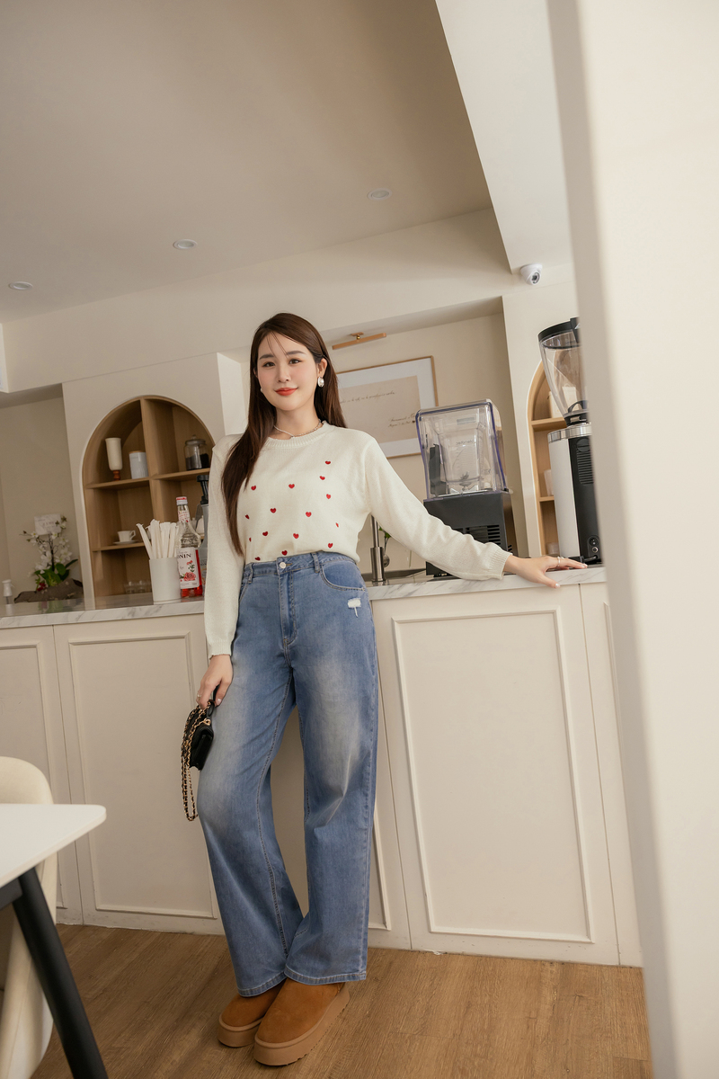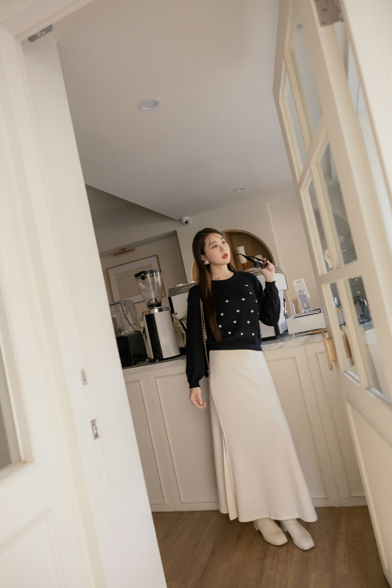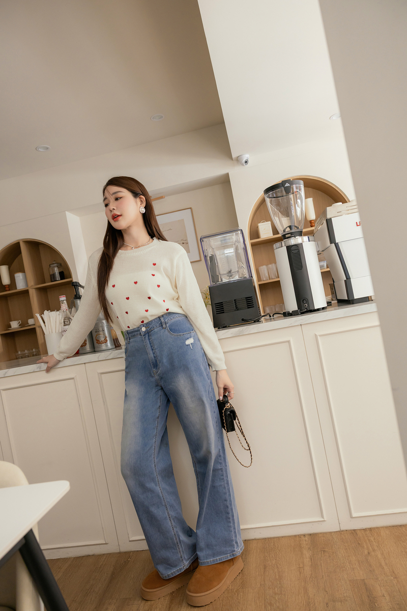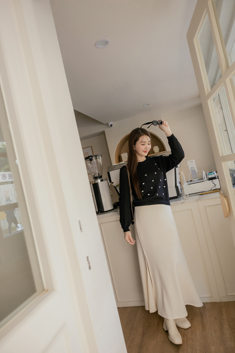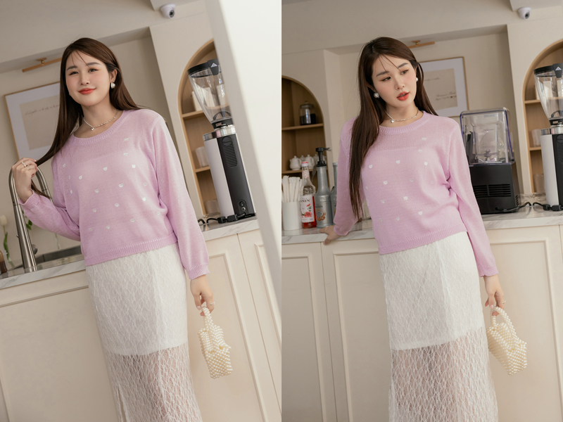 甜甜的愛心刺繡針織上衣