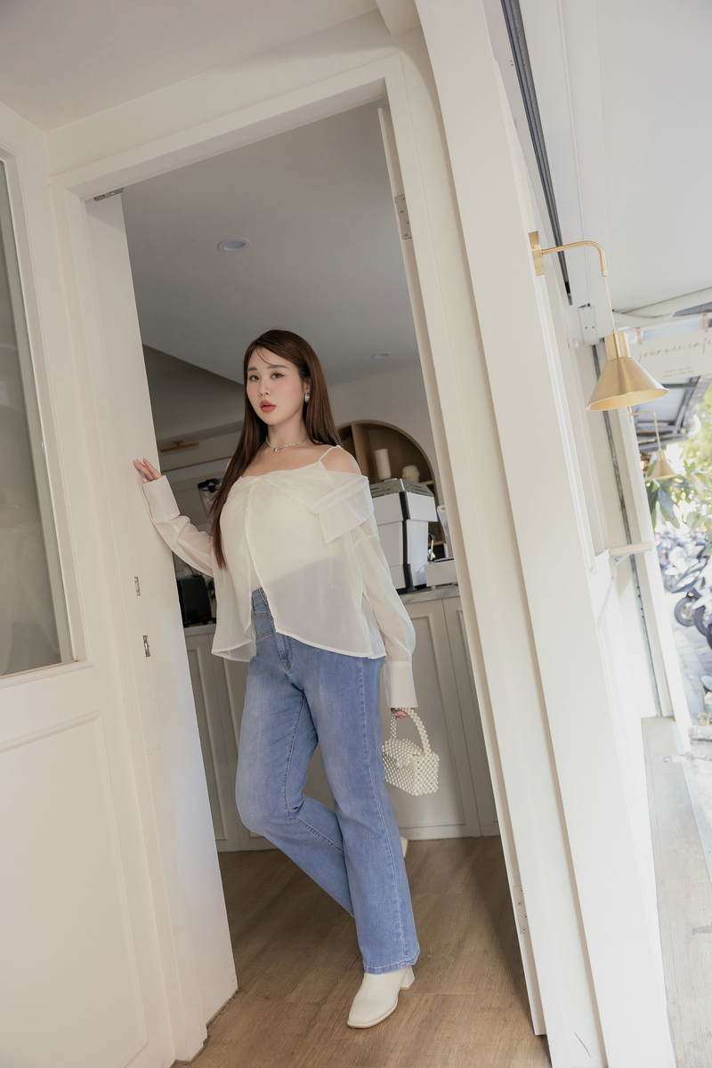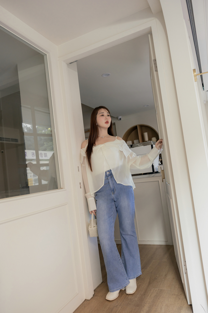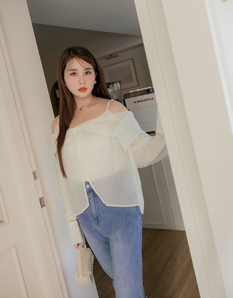 肩可調-扭結透膚襯衫上衣