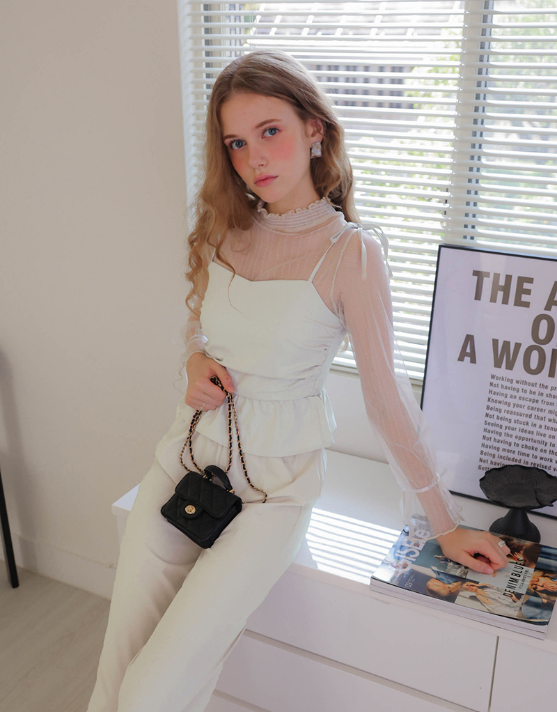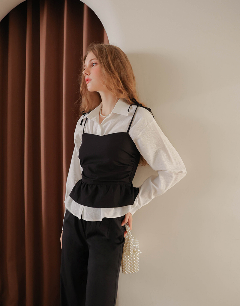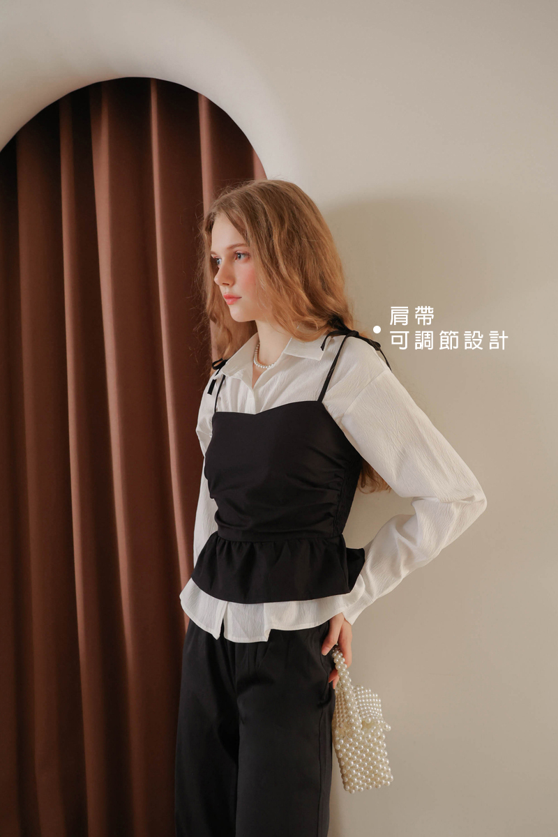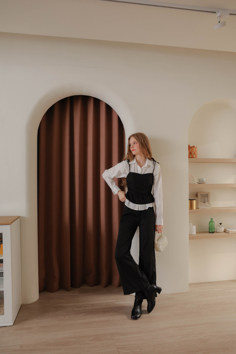 • 兩件式-附綁帶磨毛格紋洋裝套組