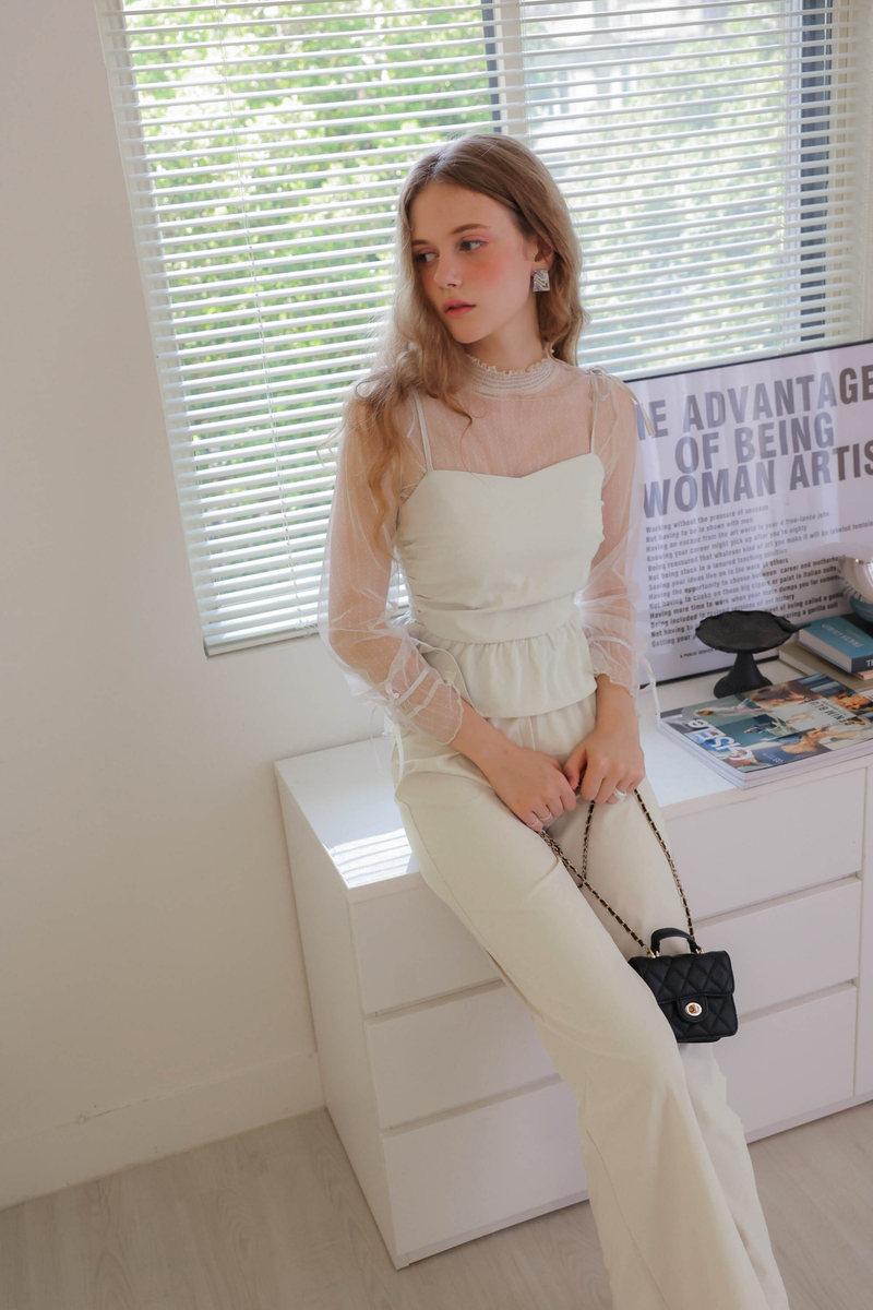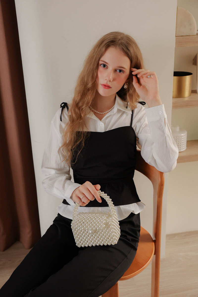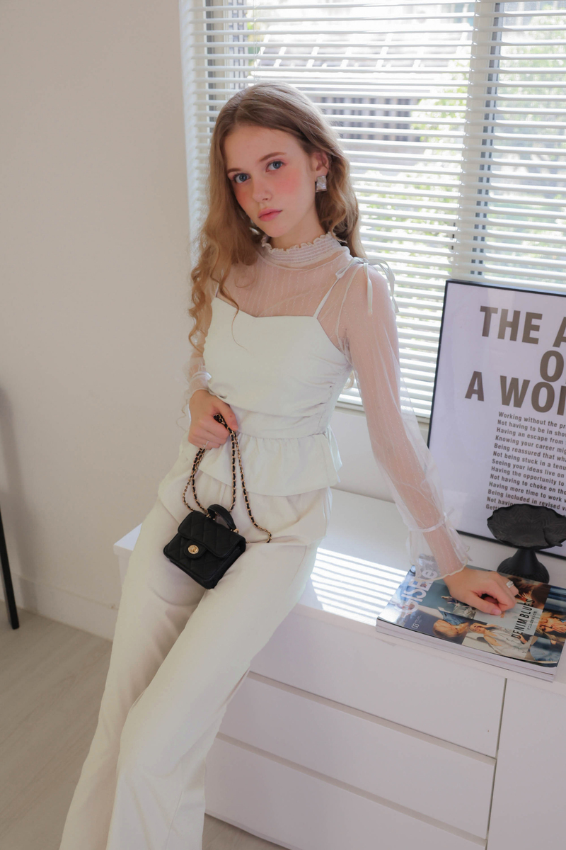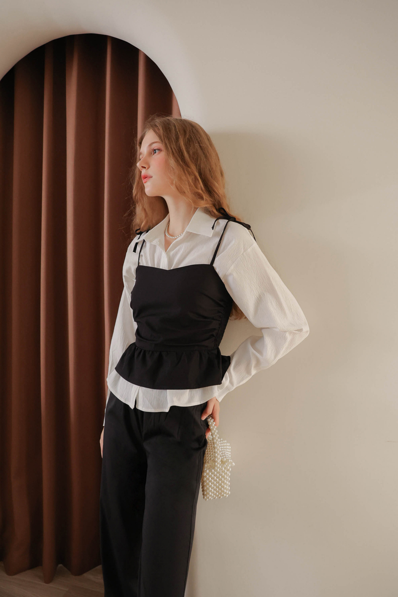 • 兩件式-附綁帶磨毛格紋洋裝套組