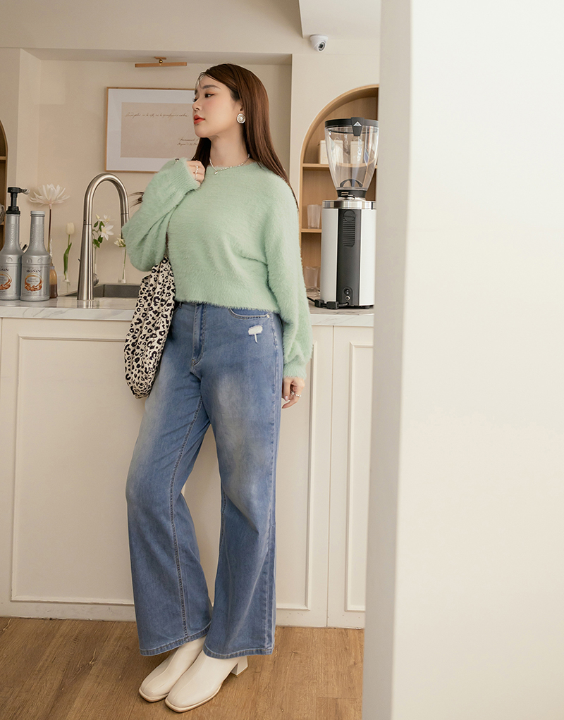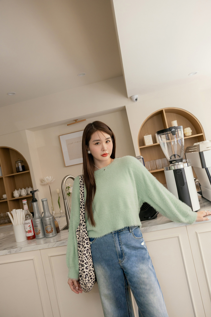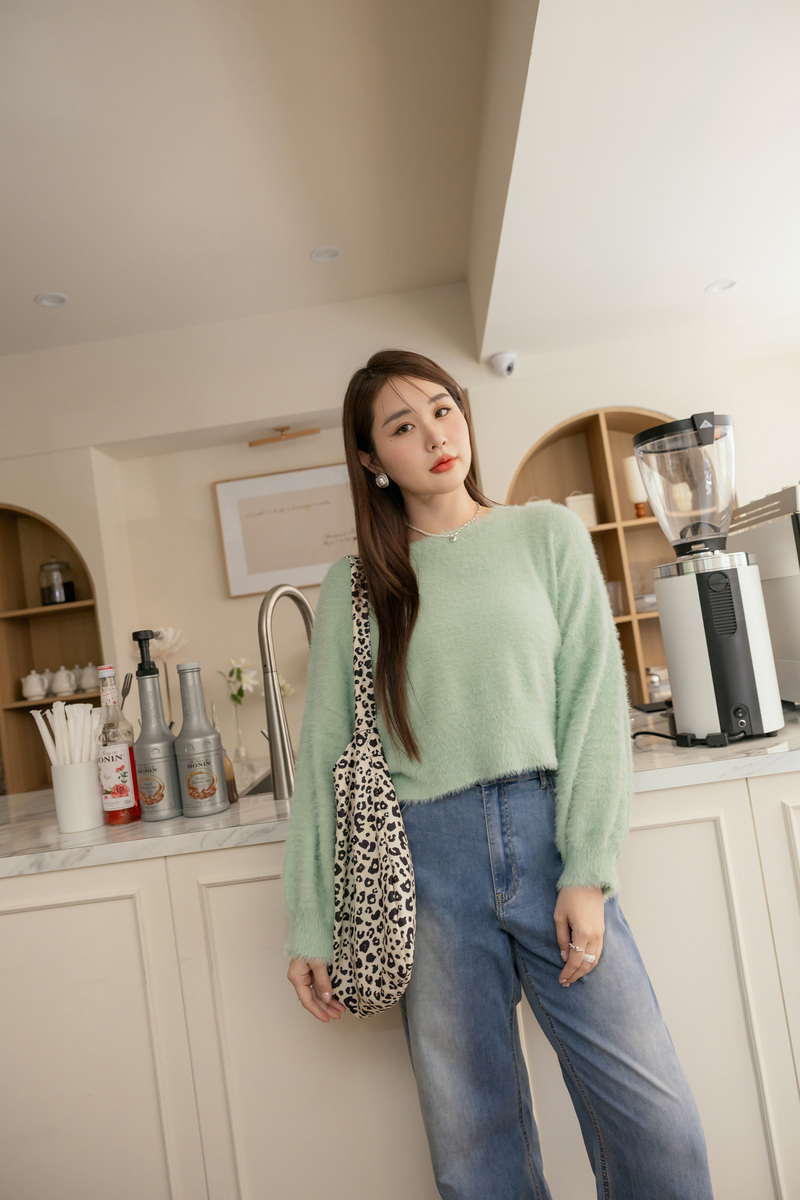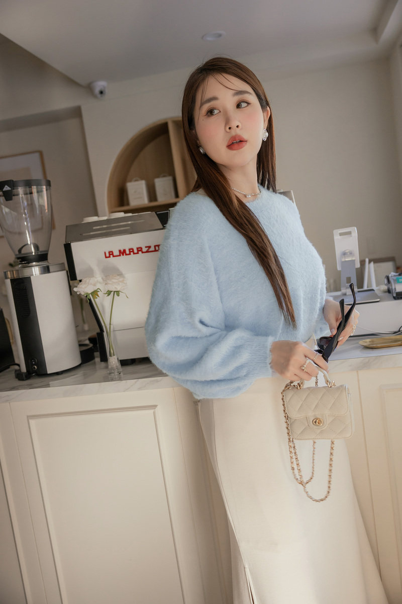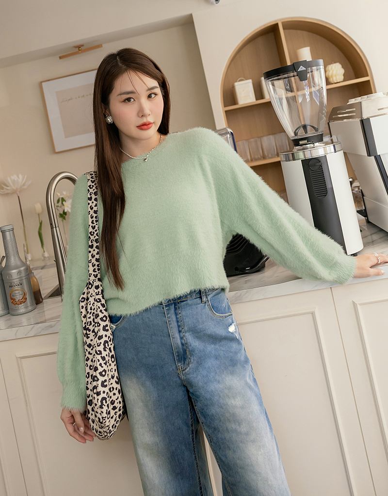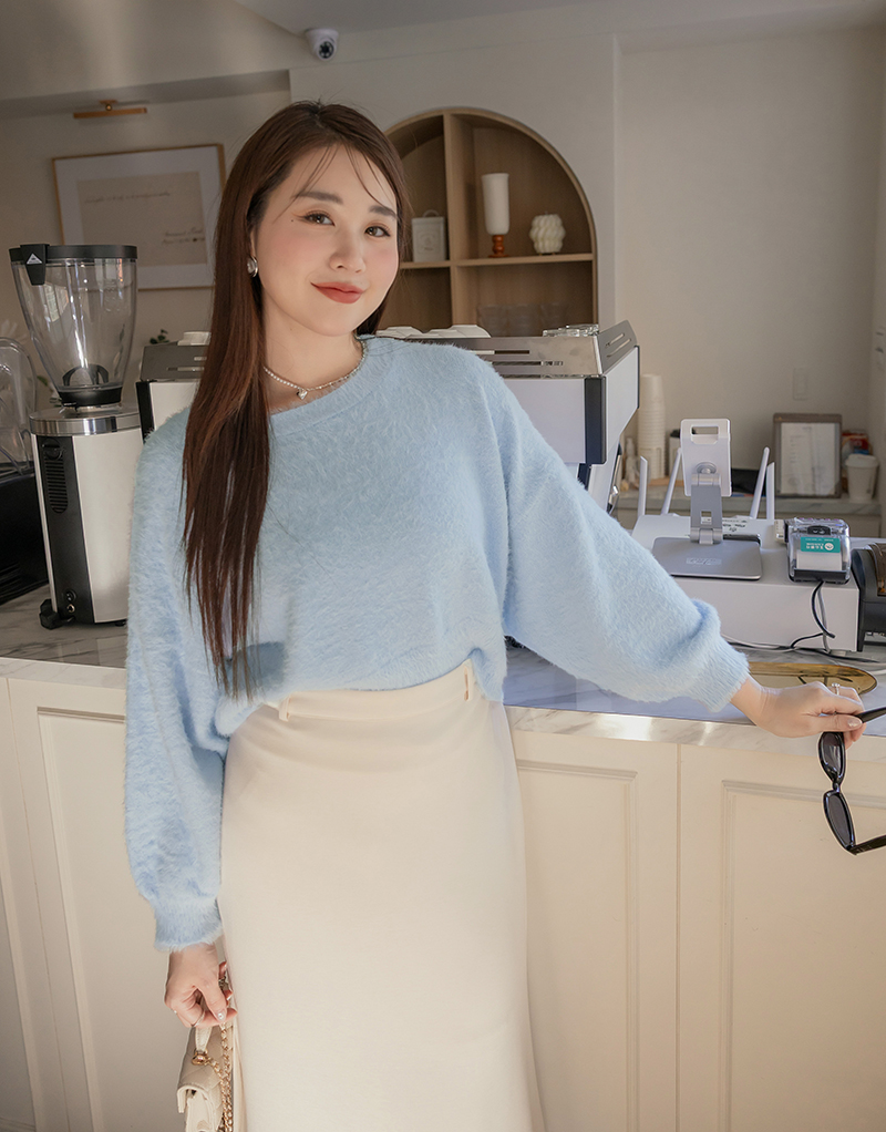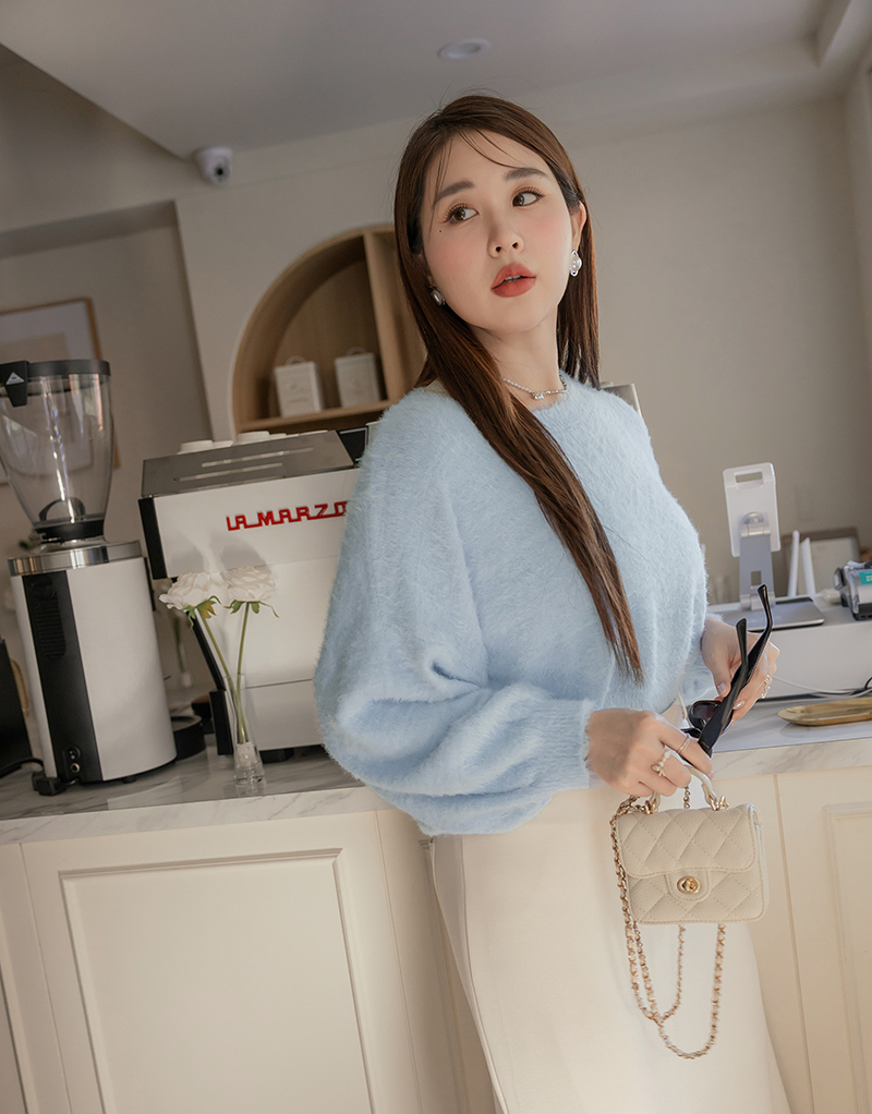 軟綿綿短版澎袖針織毛衣