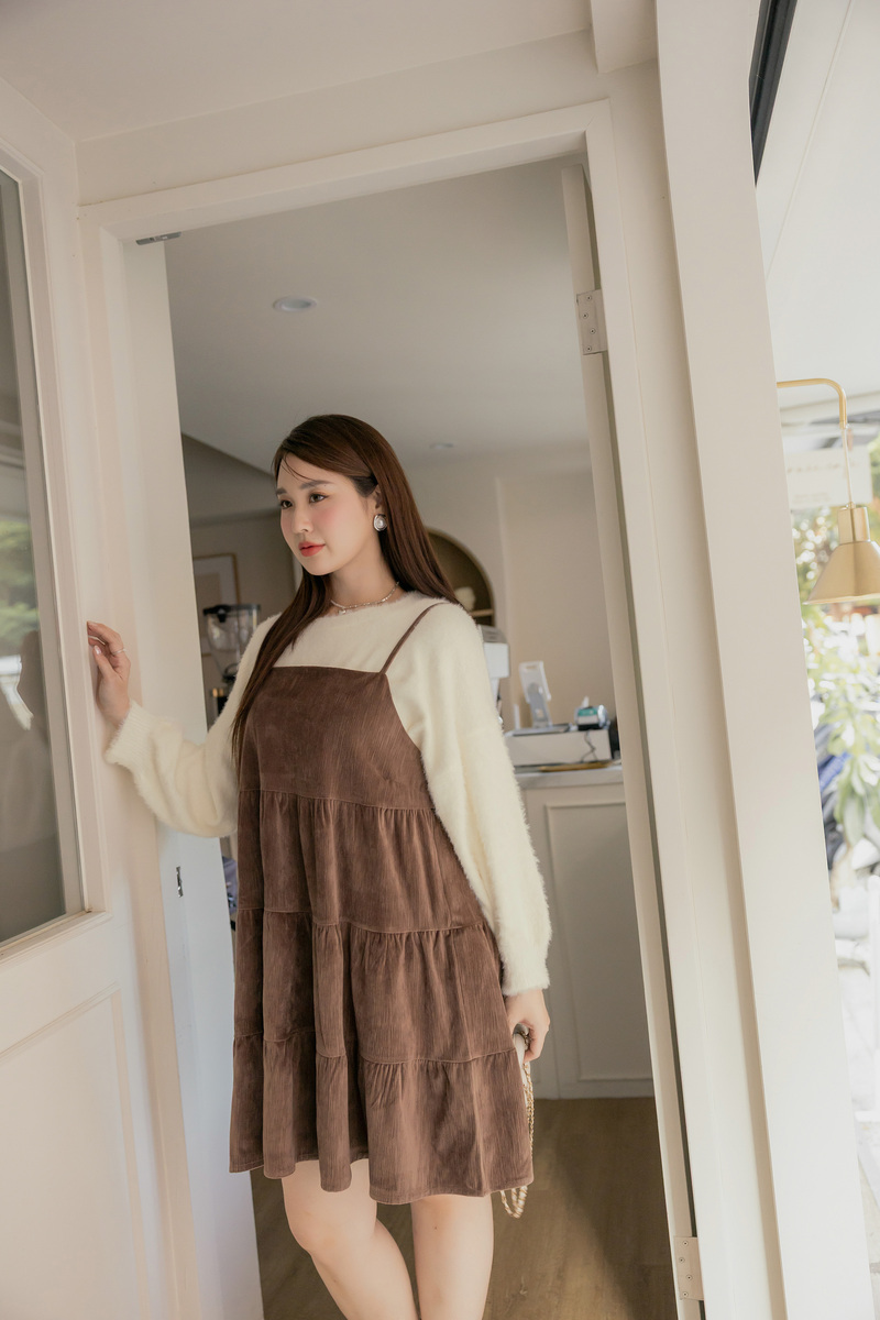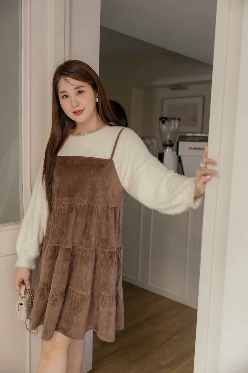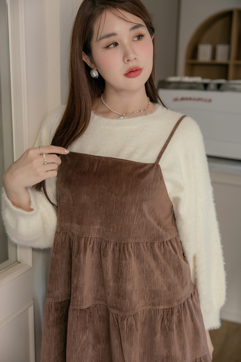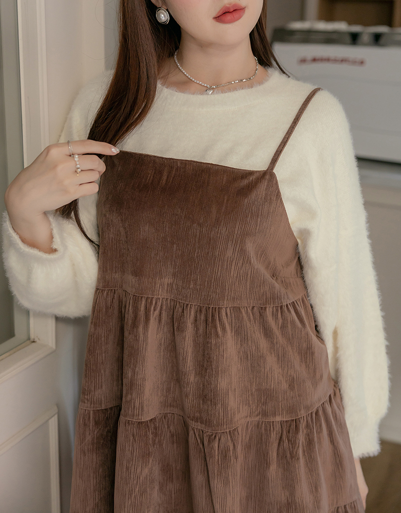 • 肩可調-可愛絨面蛋糕洋裝