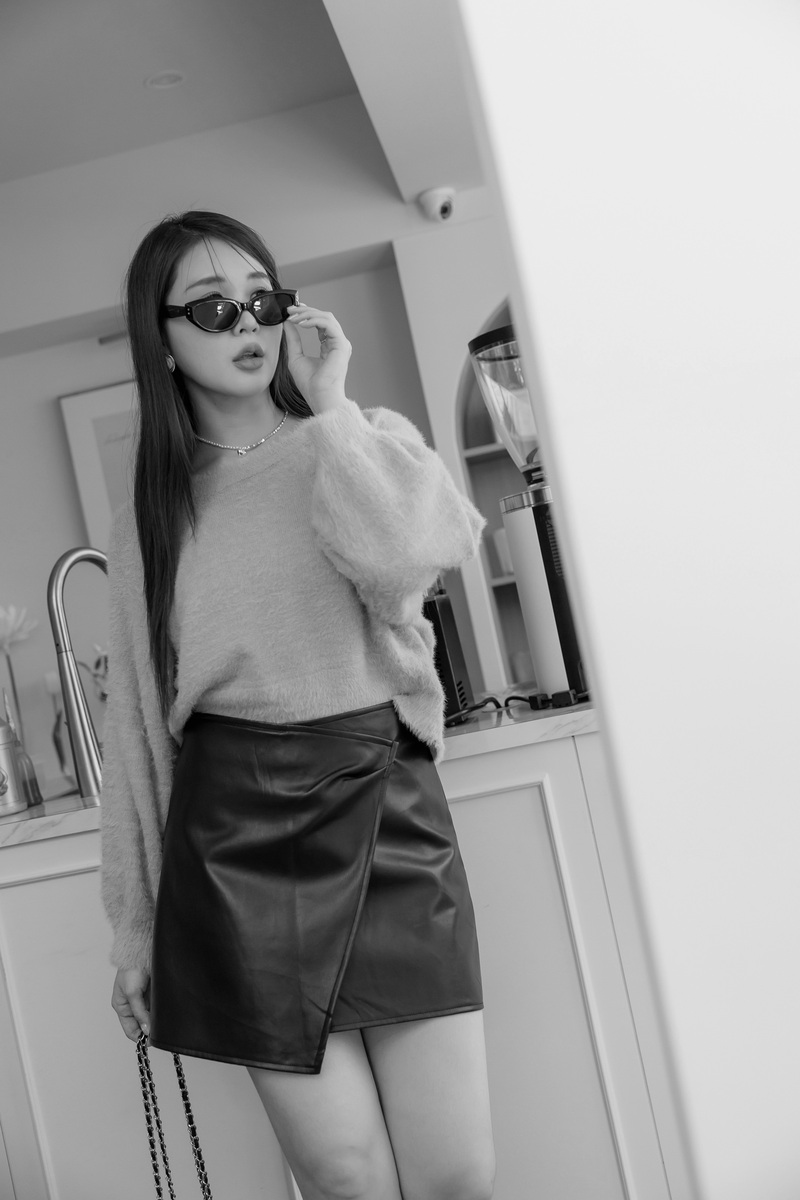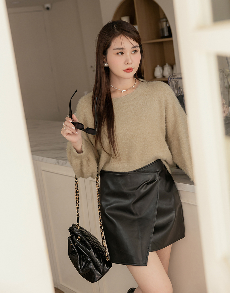 • 時髦必收開片式皮質裙