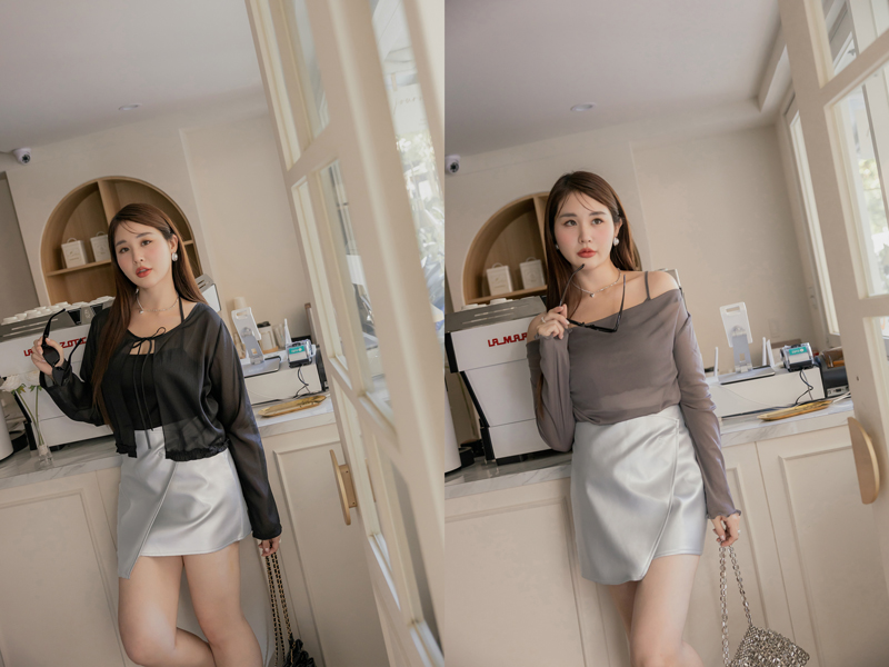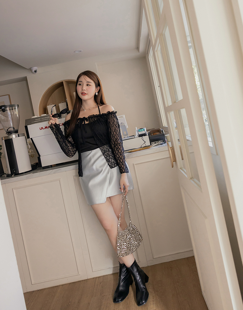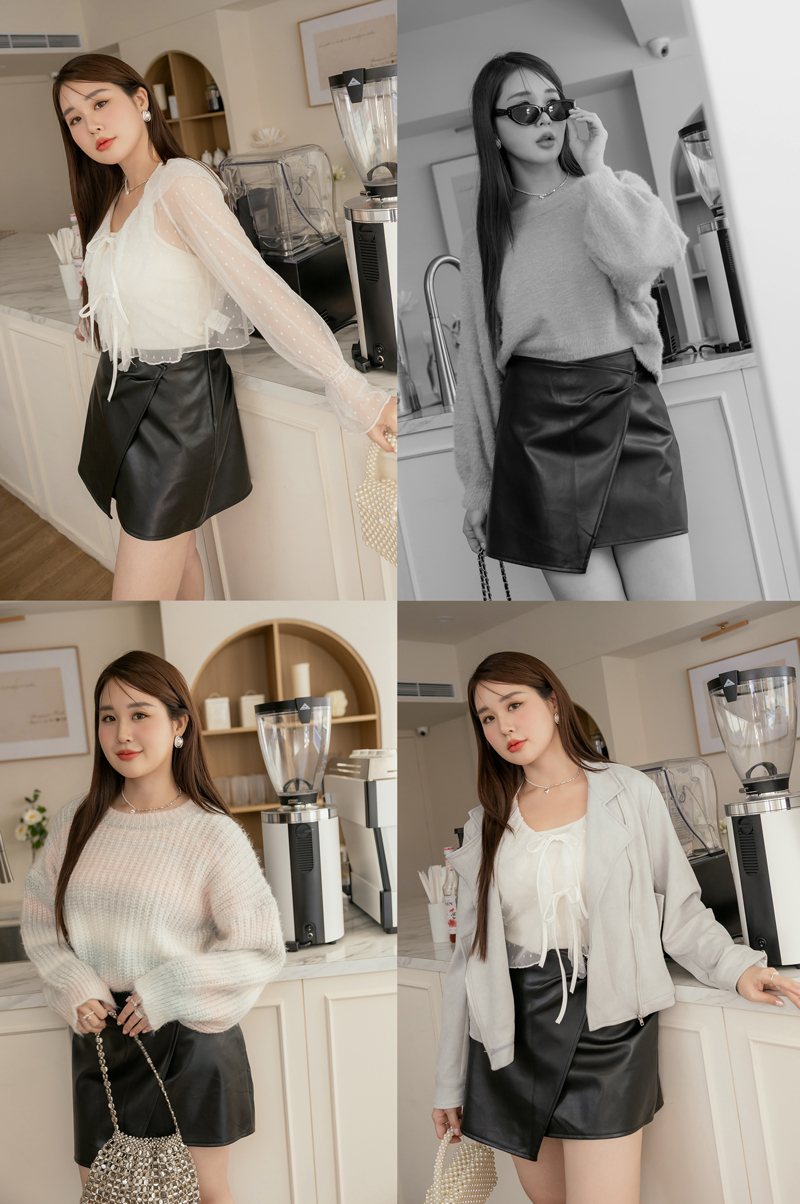 時髦必收開片式皮質裙