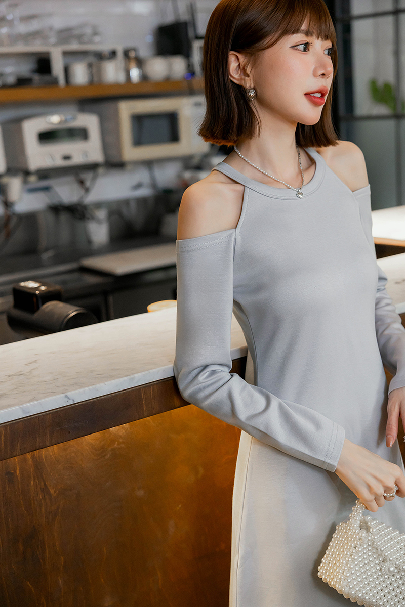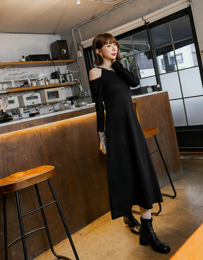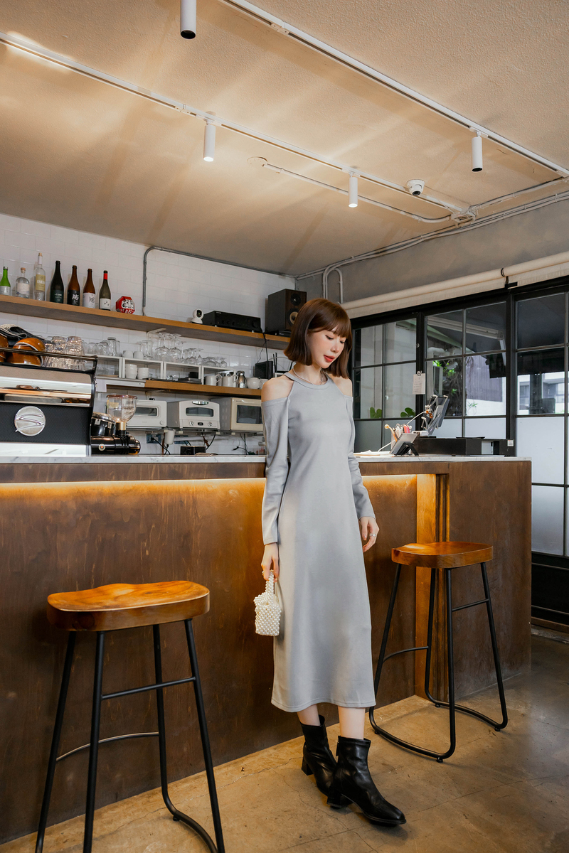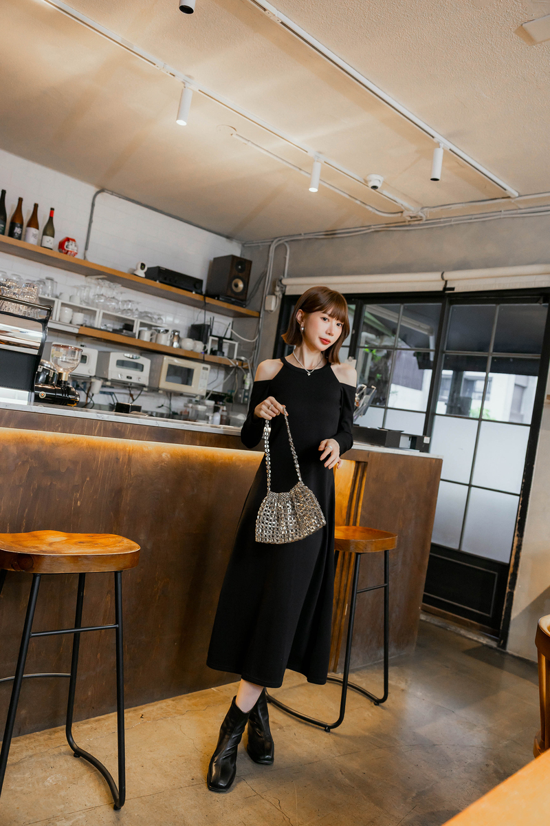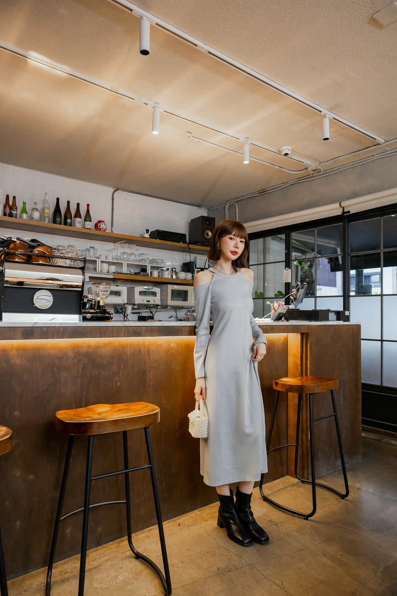 • 兩件式-附綁帶磨毛格紋洋裝套組