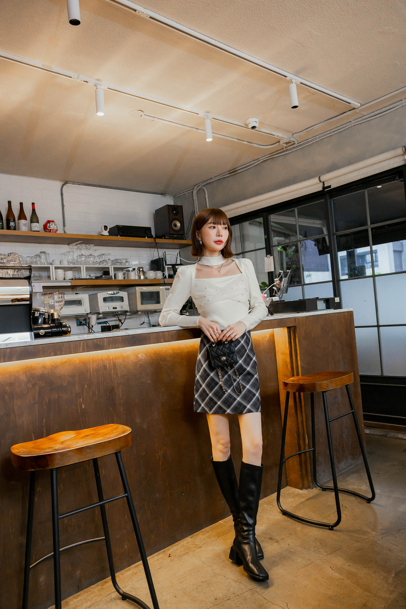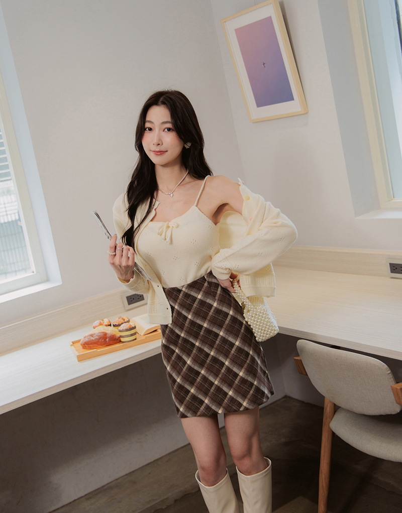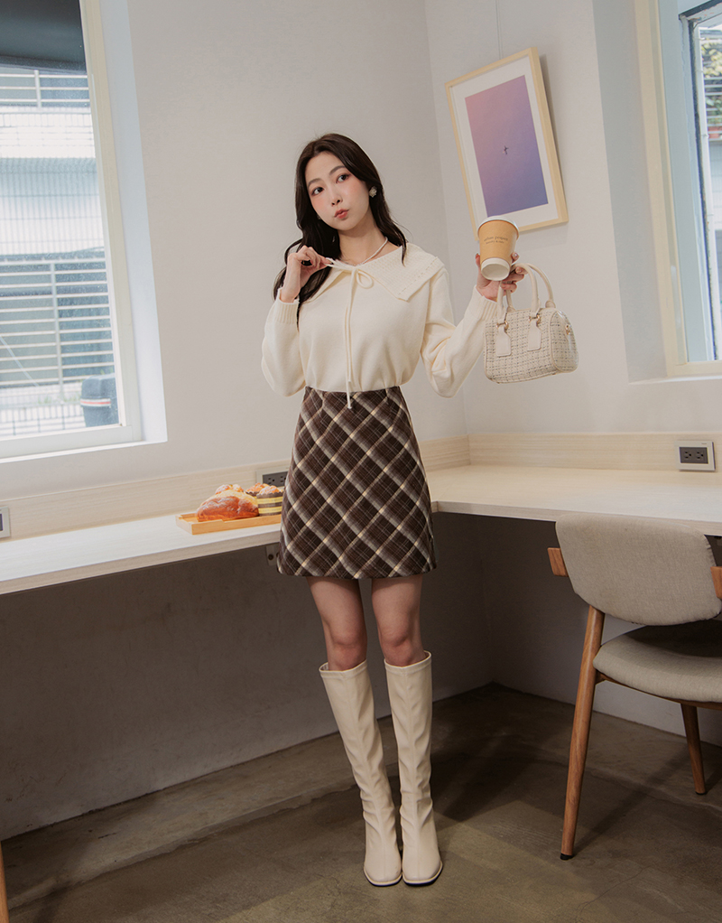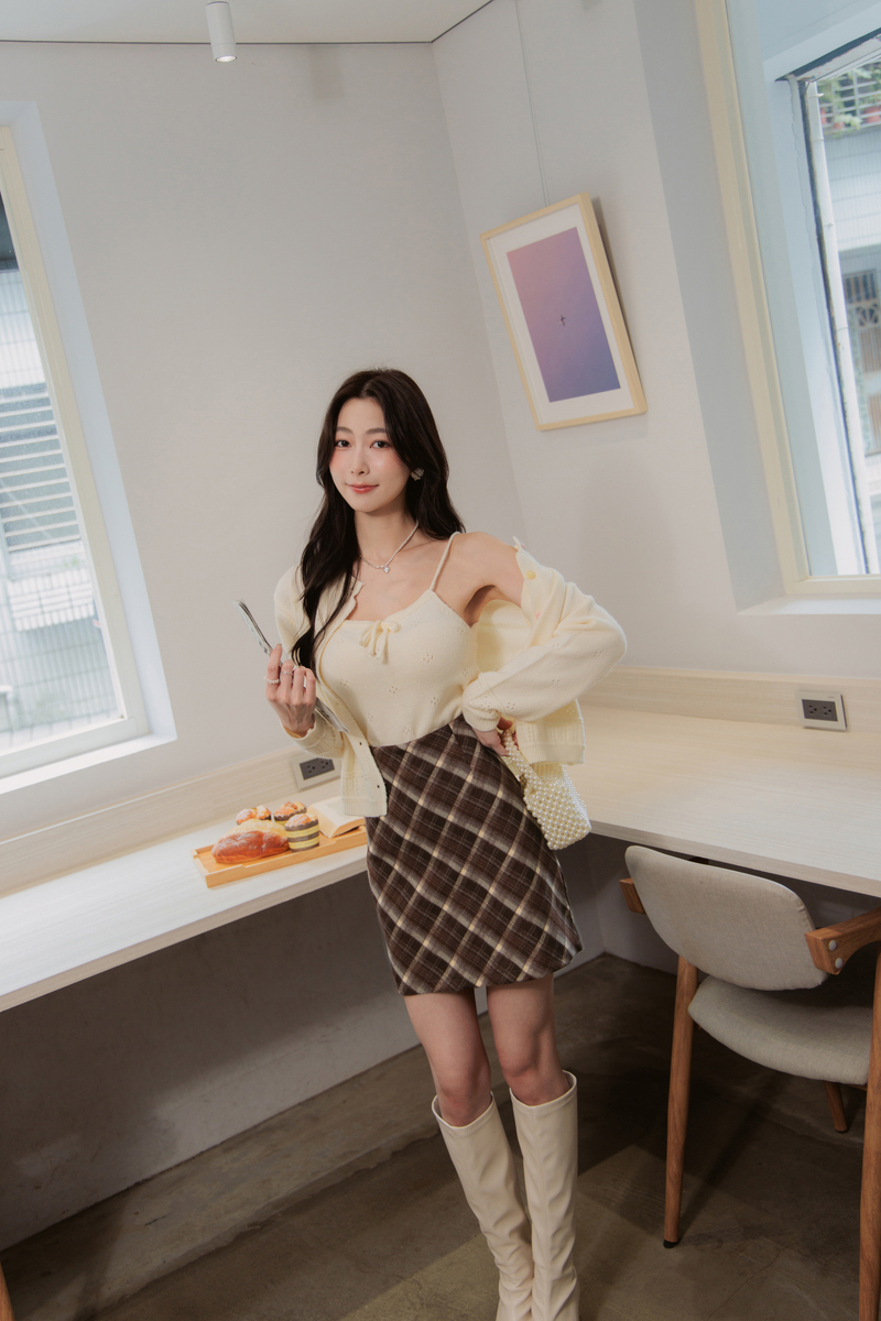 英倫風格紋毛呢褲裙