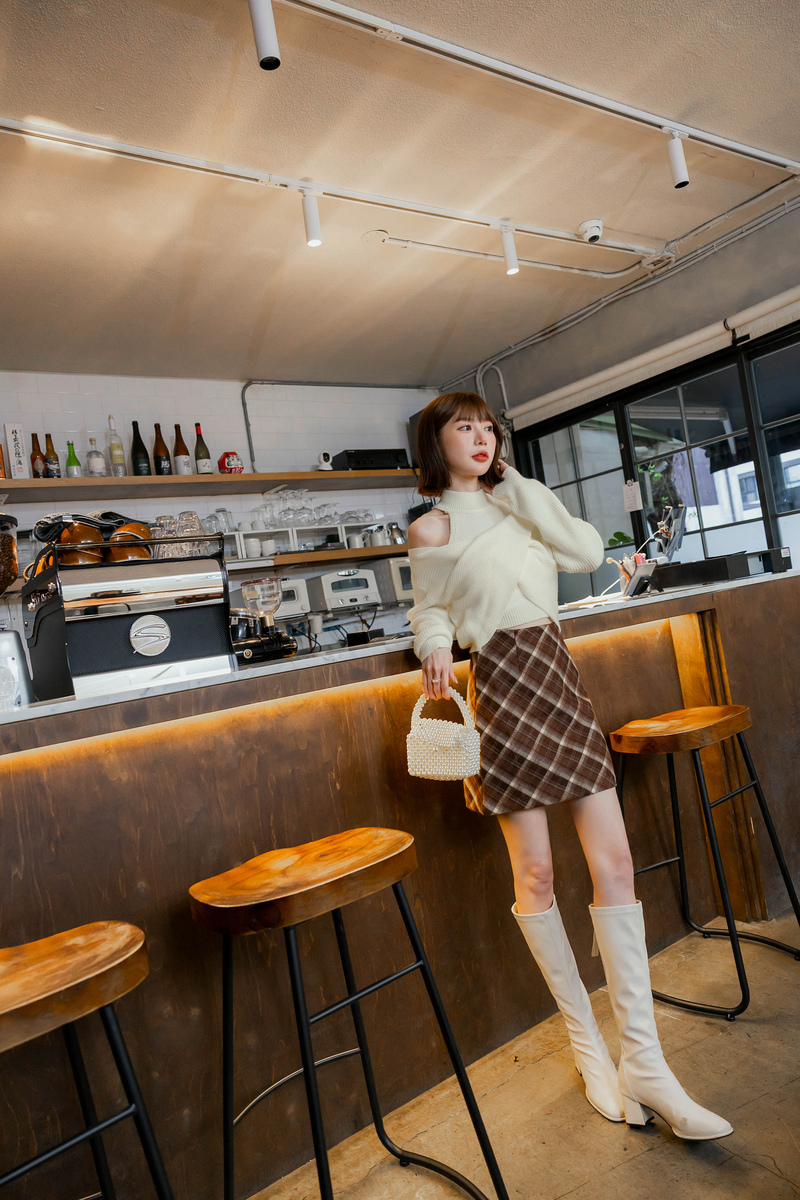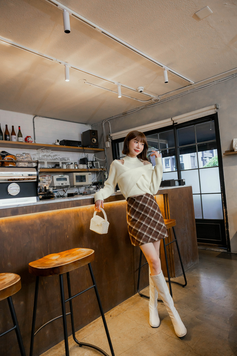 • 微性感挖肩繞頸針織毛衣