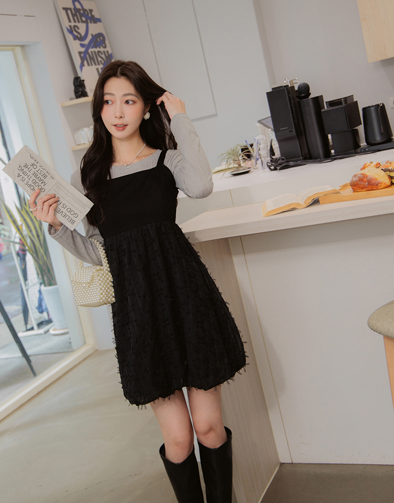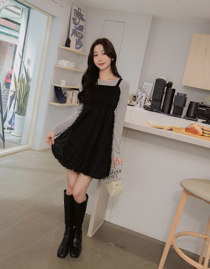 舒芙蕾系列-異材質拼接洋裝