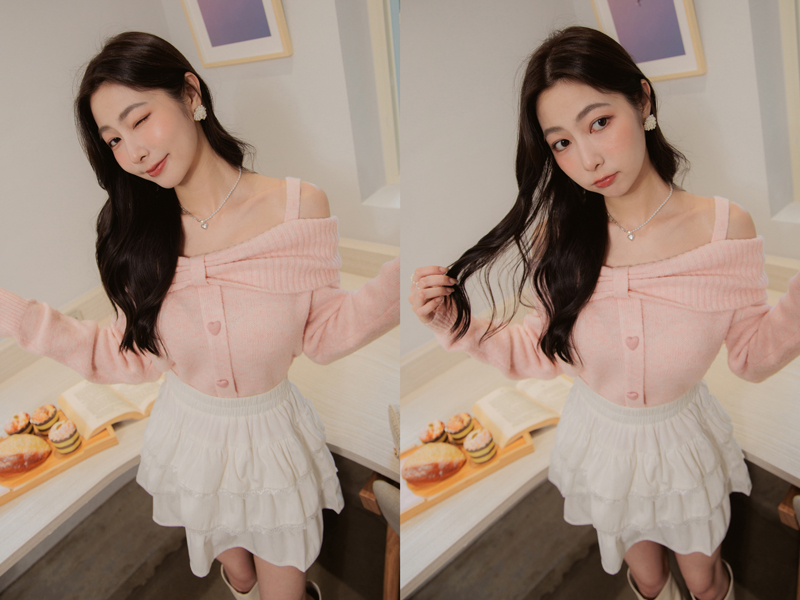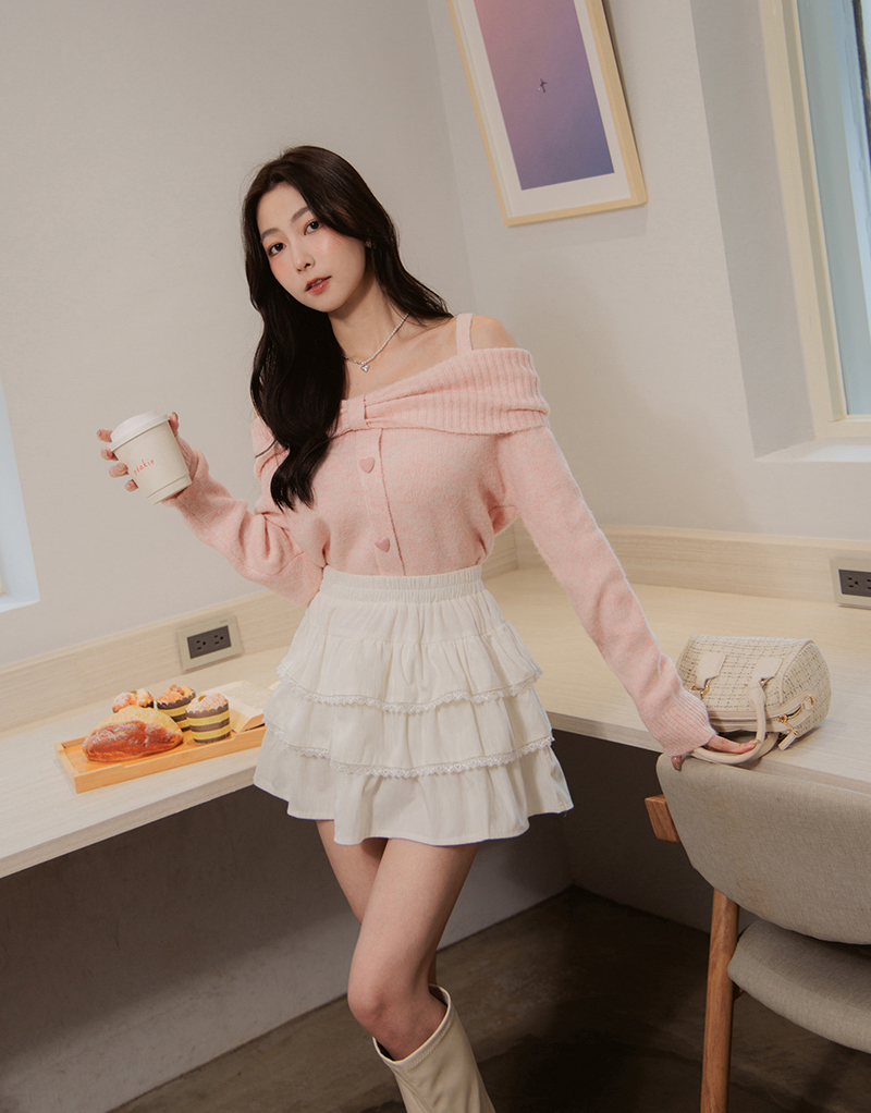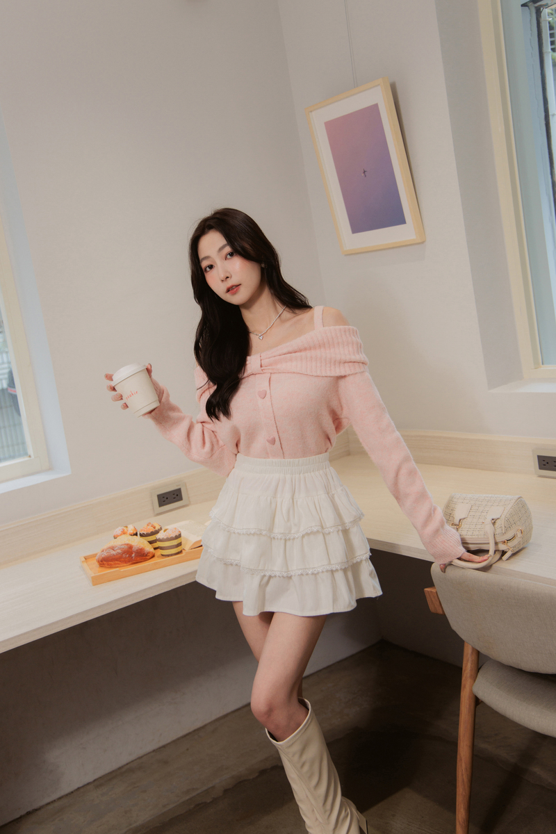 • 甜甜滾邊蕾絲絨感蛋糕裙