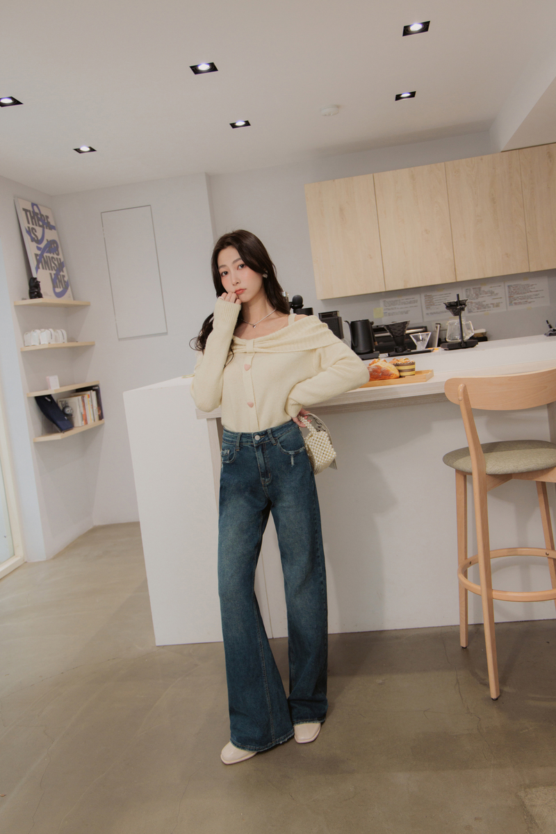 • 高個女孩限定-5KG長腿刷磨牛仔寬褲