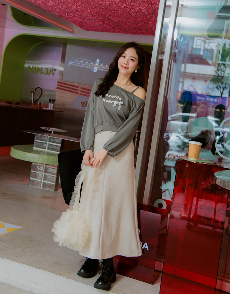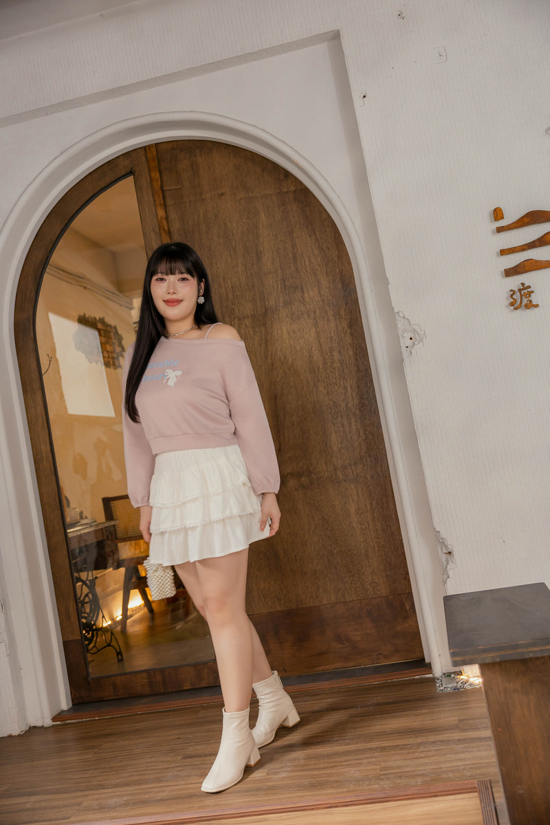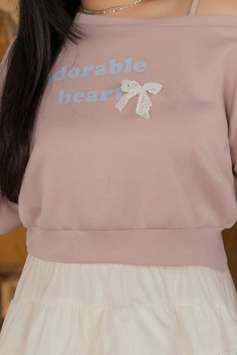 舒芙蕾系列-斜肩蕾絲蝴蝶結上衣