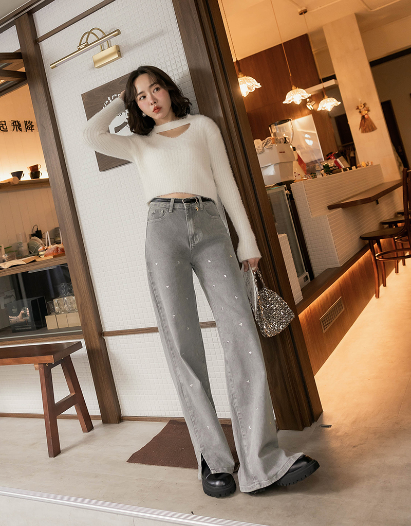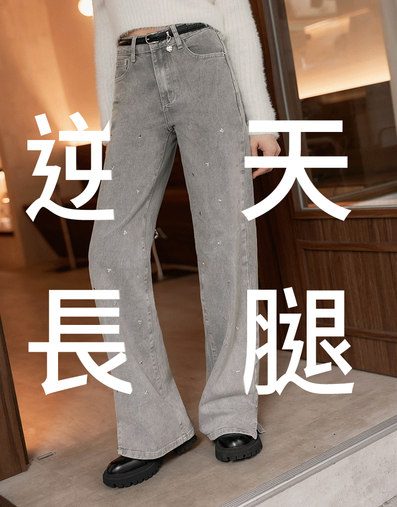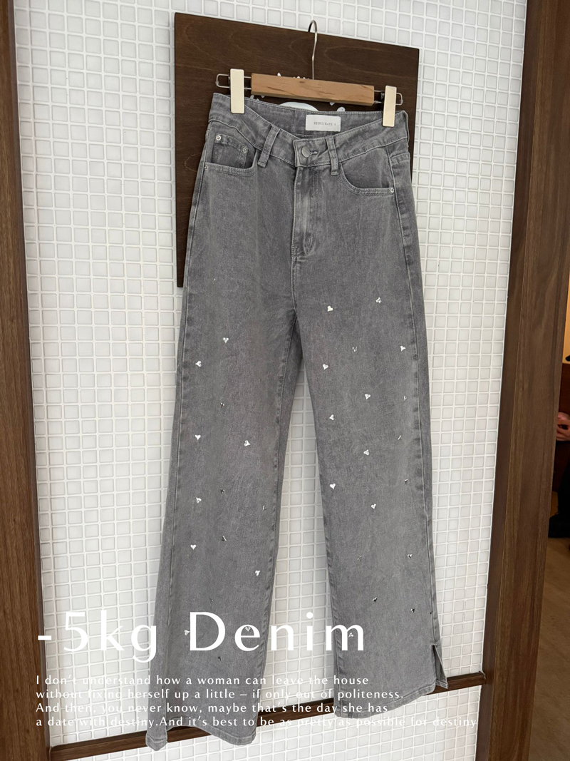 -5KG長腿系列-愛心燙印牛仔寬褲