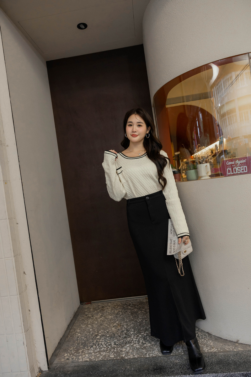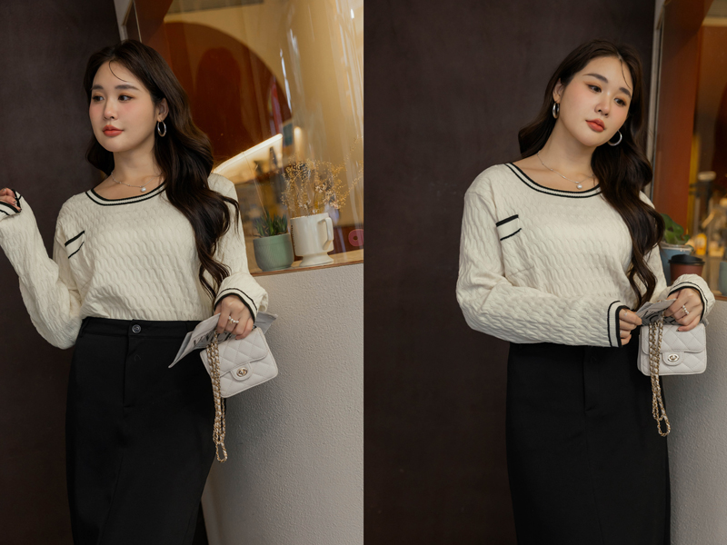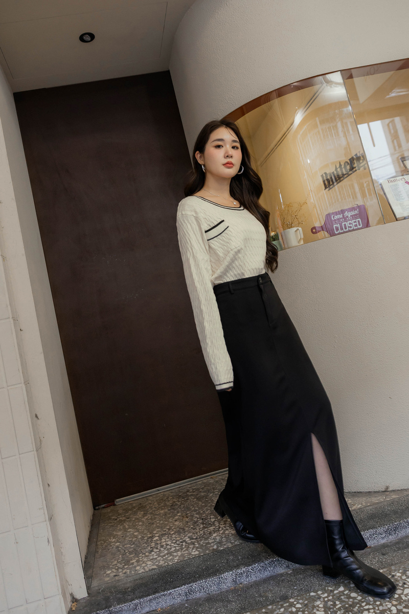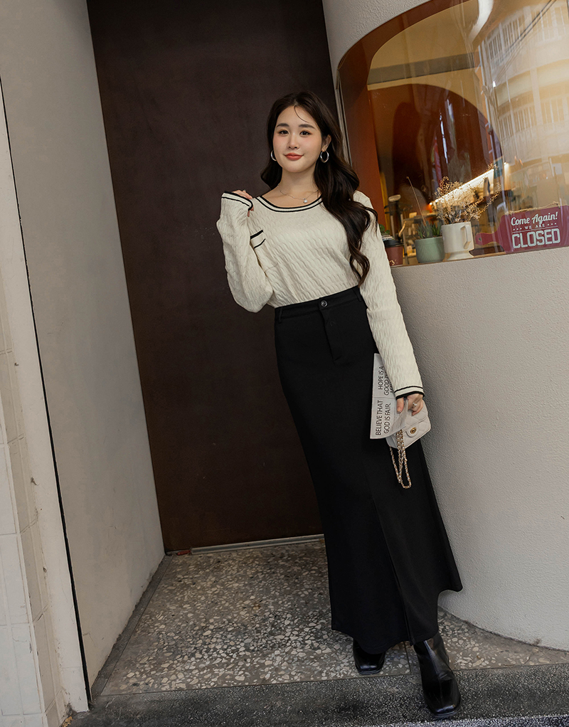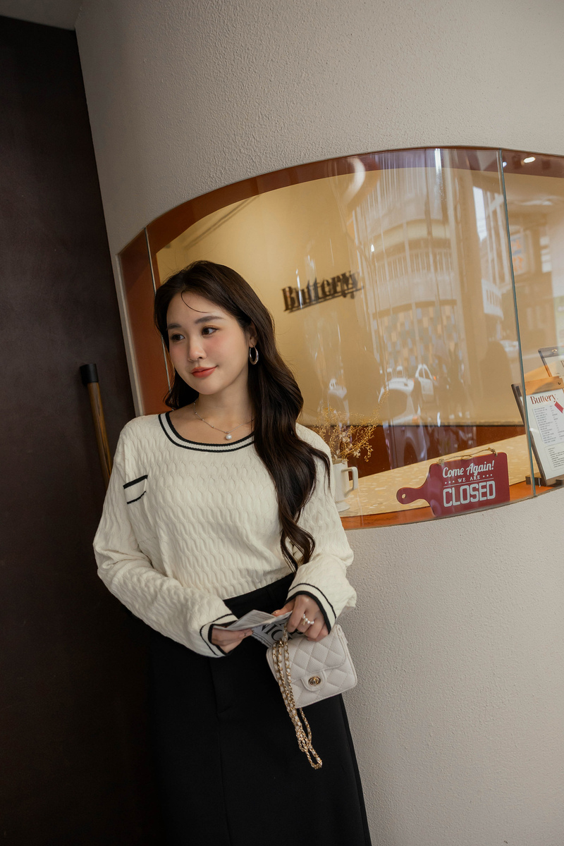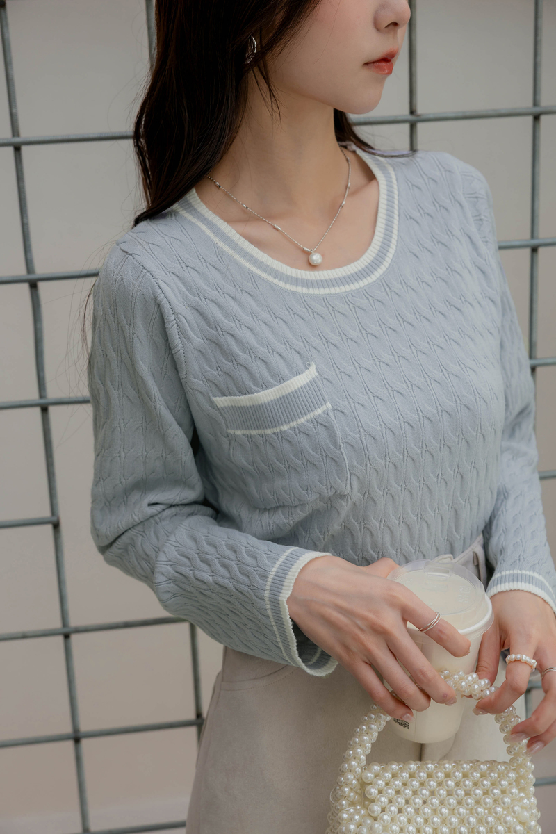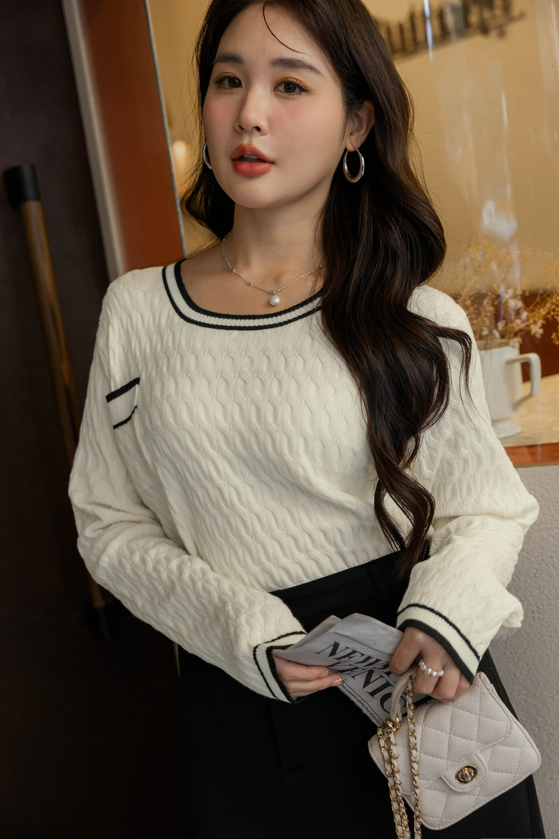 撞色麻花針織上衣