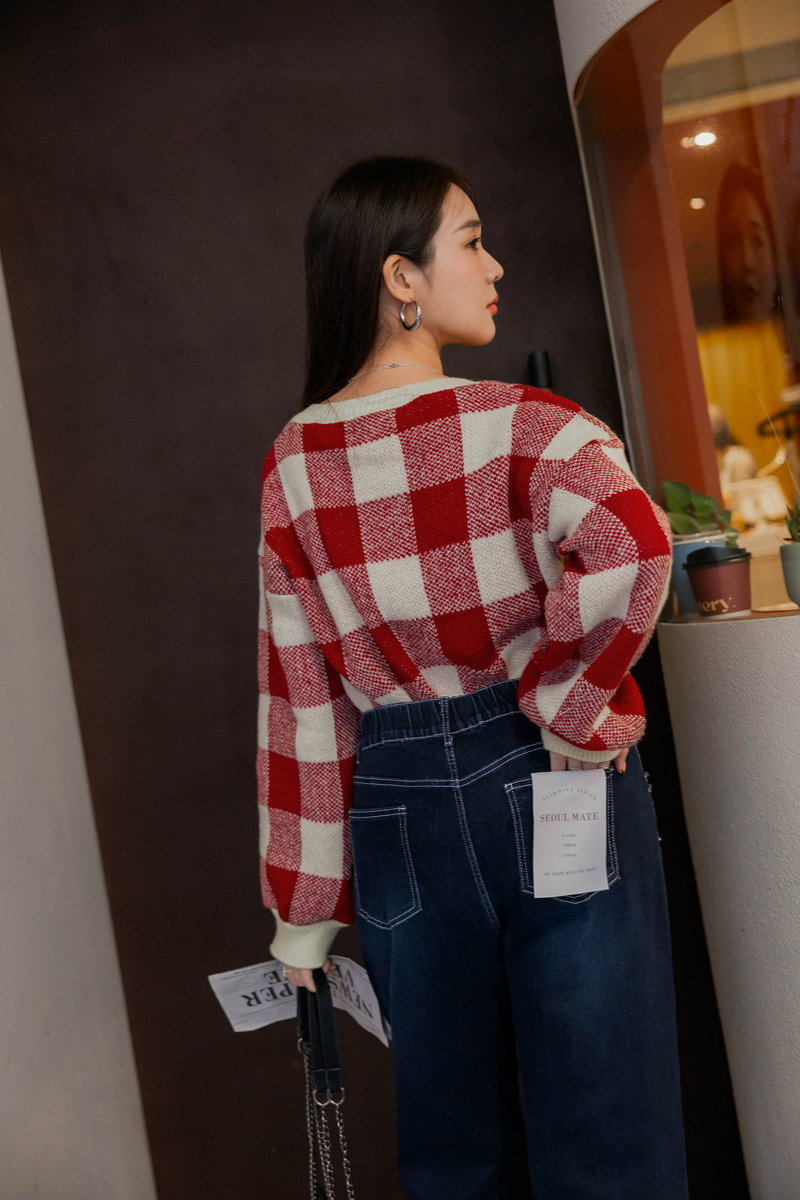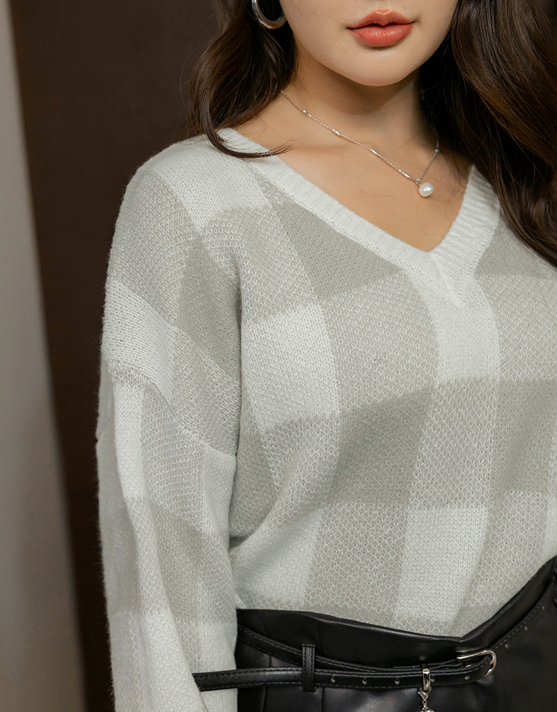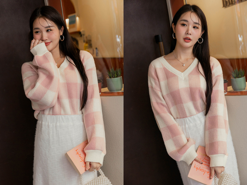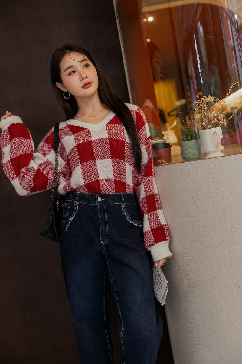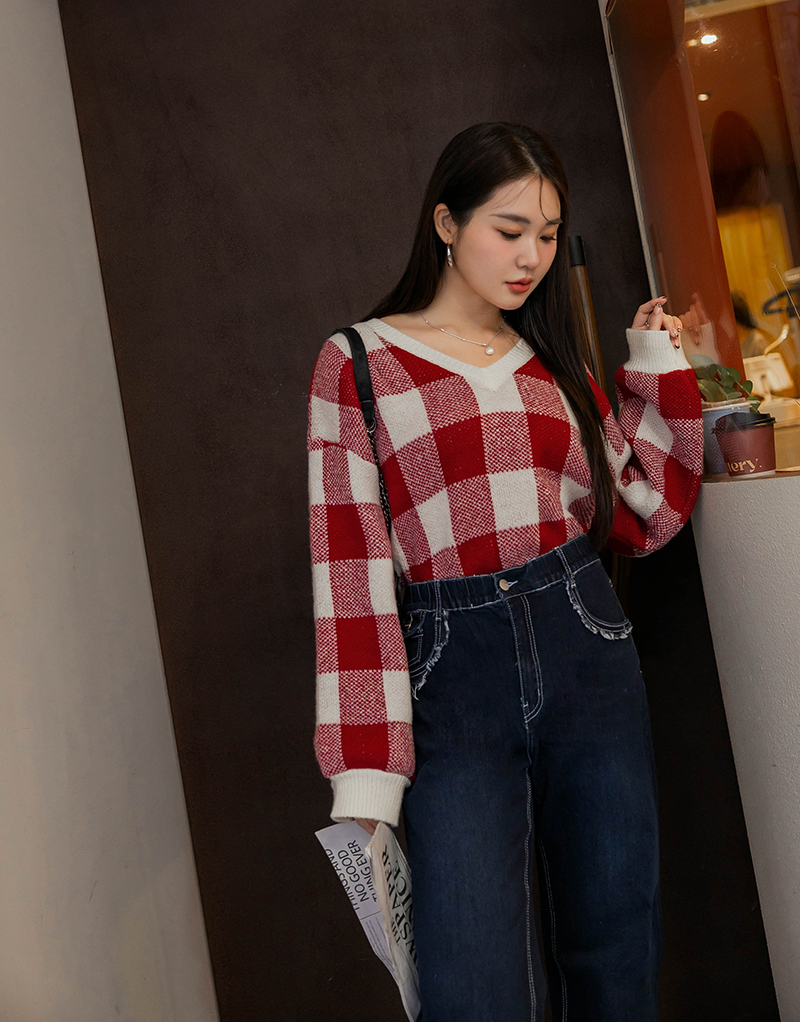 繽紛撞色格紋針織毛衣