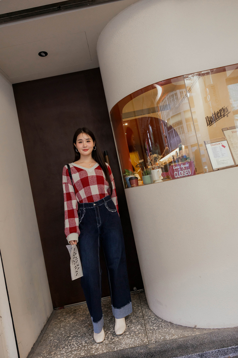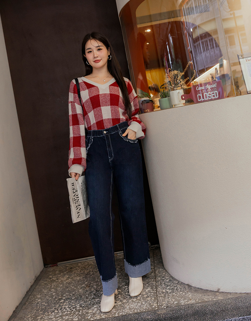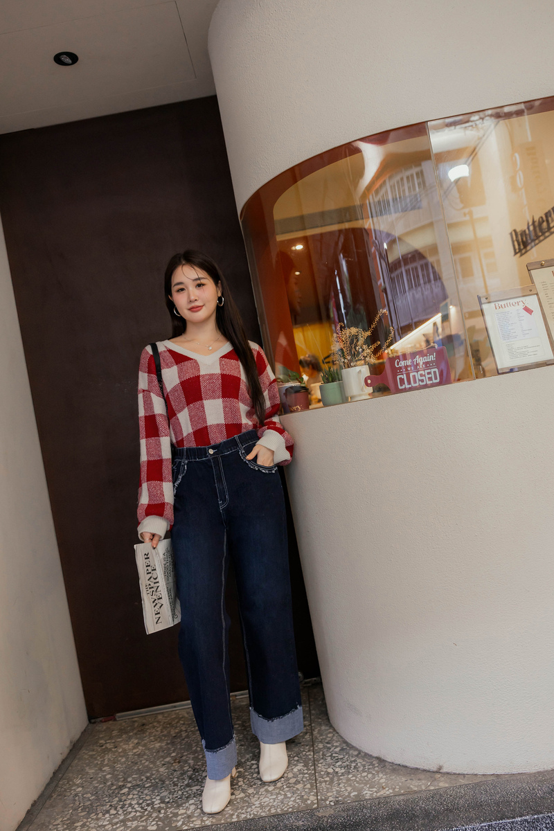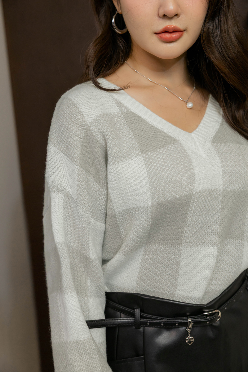 繽紛撞色格紋針織毛衣