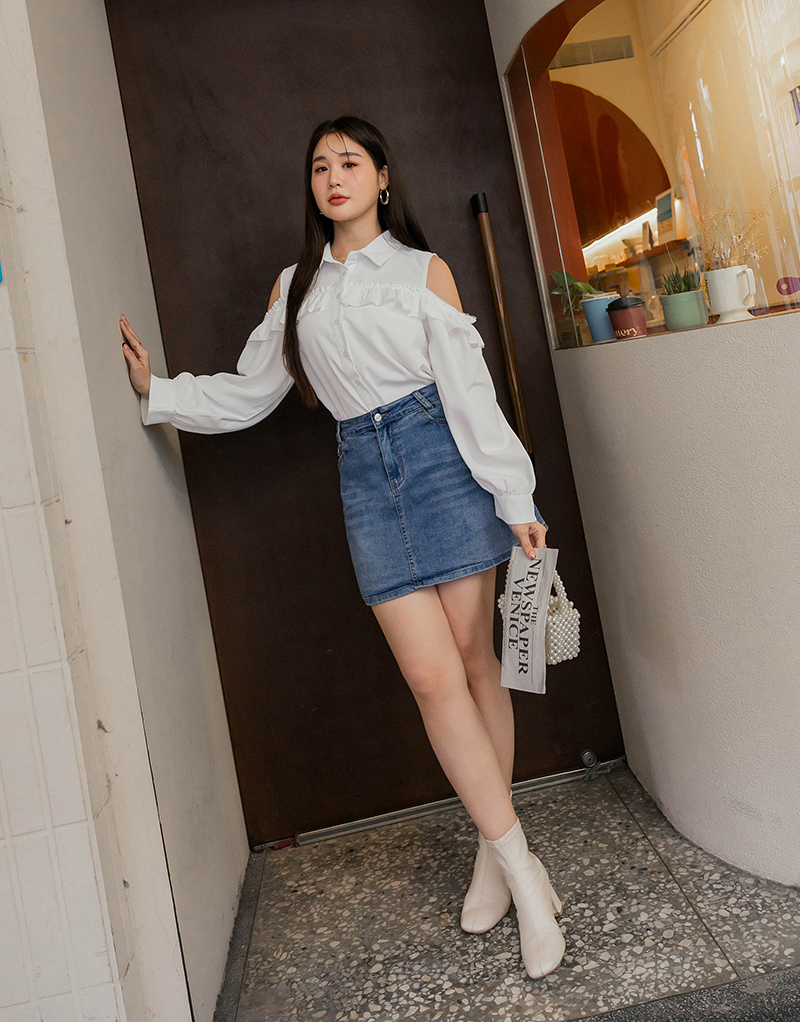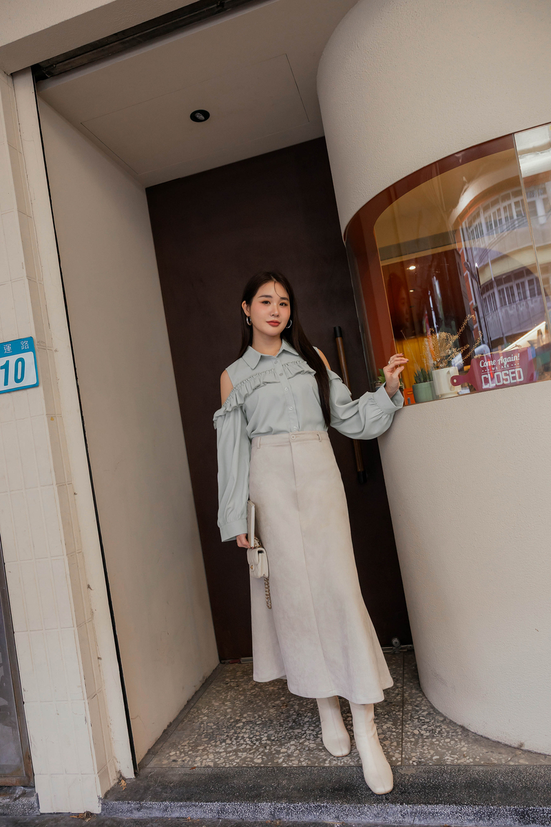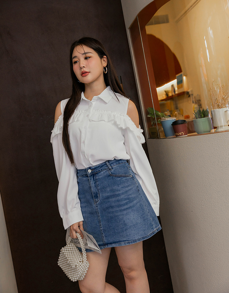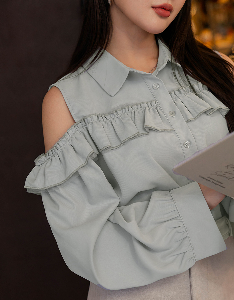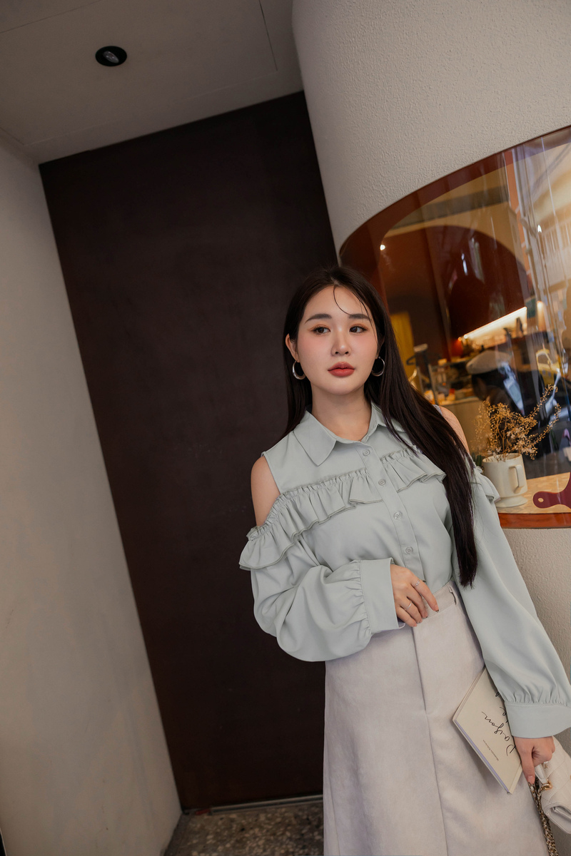浪漫荷葉挖肩雪紡上衣